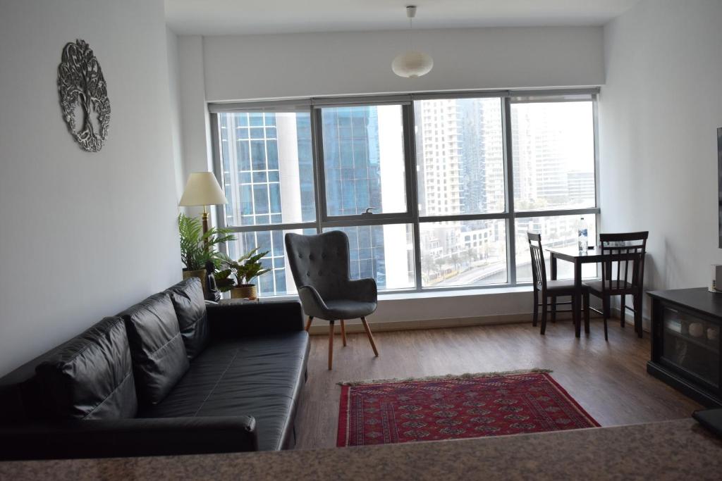 هتل 1 بی آر آپارتمان، استونینگ دبی مارینا ویو، 5 مین واک تو جی بی آر بیچ، 30 سک وک تو ترم اند باس استیشنز (1BR apartment, Stunning Dubai Marina view, 5 min walk to JBR beach, 30 sec walk to tram and bus stations)