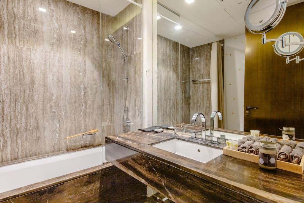 آیا واحد فندی 1BR در ارتفاعات داماک در طبقه 65 وان آب گرم برای مهمانان خود دارد؟