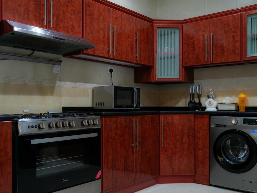 شما واجد شرایط تخفیف ویژه در سایت InjaTrip برای رزرو ویلای استخر O2 هستید! برای صرفه جویی در این ملک، تنها کاری که باید انجام دهید این است که وارد شوید. ویلا با استخر O2 در راس الخیمه، تنها 1.6 مایلی از ساحل الجزیره و 3.2 مایلی از مرکز خرید الحمرا واقع شده است. این ملک دارای استخر خصوصی، وای فای رایگان و پارکینگ اختصاصی رایگان است. پارک آبی دریم لند 13 مایلی و مرکز خرید المنار 14 مایلی از ویلا فاصله دارند. این ویلا بزرگ با تهویه مطبوع دارای 3 اتاق خواب، 3 حمام با حمام، دوش، و حوله است. یک تلویزیون صفحهتخت با خدمات پخش جریانی ارائه میشود. محل اقامت غیر سیگاری است. برای شب هایی که ترجیح می دهید بیرون غذا نخورید، می توانید در آشپزخانه خود آشپزی کنید. مهمانان همچنین می توانند در باغ استراحت کنند. باشگاه گلف الحمرا 3.6 مایل از ویلا فاصله دارد، در حالی که باشگاه گلف تاور لینکز 13 مایل با ویلا فاصله دارد. نزدیکترین فرودگاه، فرودگاه بینالمللی راسالخیمه است، در 16 مایلی از ویلای استخر O2. فاصله در توضیحات ملک با استفاده از © OpenStreetMap محاسبه میشود.
