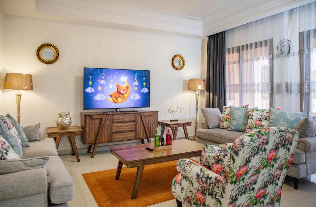 ویلا بزرگ است، اتاق ها به اندازه کافی بزرگ هستند، و کارکنان مفید هستند، موقعیت مکانی عالی، نزدیک به سوپر مارکت آل مایا و مرکز خرید الحمرا است