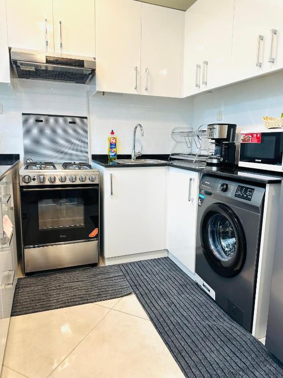 Elegant Studio: Your Perfect Stay in Dubai اقامتگاه هایی در دبی ارائه می دهد، در فاصله 5.8 مایلی از مرکز خرید امارات و 6.6 مایلی از اتودروم دبی. این ملک دسترسی به بالکن، پارکینگ خصوصی رایگان و وای فای رایگان دارد. آپارتمان دارای استخر سرپوشیده و امنیت تمام روز است. این آپارتمان 1 خوابه با تهویه مطبوع دارای آشپزخانه کاملاً مجهز، قسمت نشیمن، و تلویزیون صفحه تخت است. محل اقامت غیر سیگاری است. باشگاه گلف مونتگومری دبی 7.3 مایلی و برج برج العرب 8.1 مایلی از آپارتمان فاصله دارند. نزدیکترین فرودگاه، فرودگاه بینالمللی آل مکتوم است، 18 مایلی از Elegant Studio: Your Perfect Stay in Dubai. فاصله در توضیحات ملک با استفاده از © OpenStreetMap محاسبه میشود.
