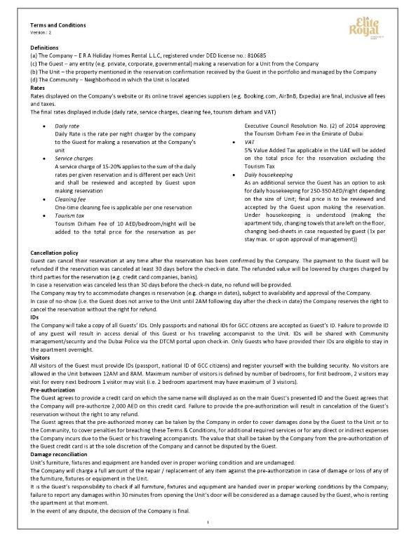 قوانین و مقررات عمومی رزرو هتل هتل الیت رویال آپارتمان - پانورامیک ویت برج خلیفه & فول فونتین ویو - های فلور - پاترون (Elite Royal Apartment - Panoramic with Burj Khalifa & Full Fountain View - High Floor - Patron)