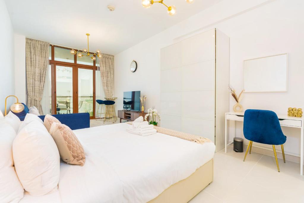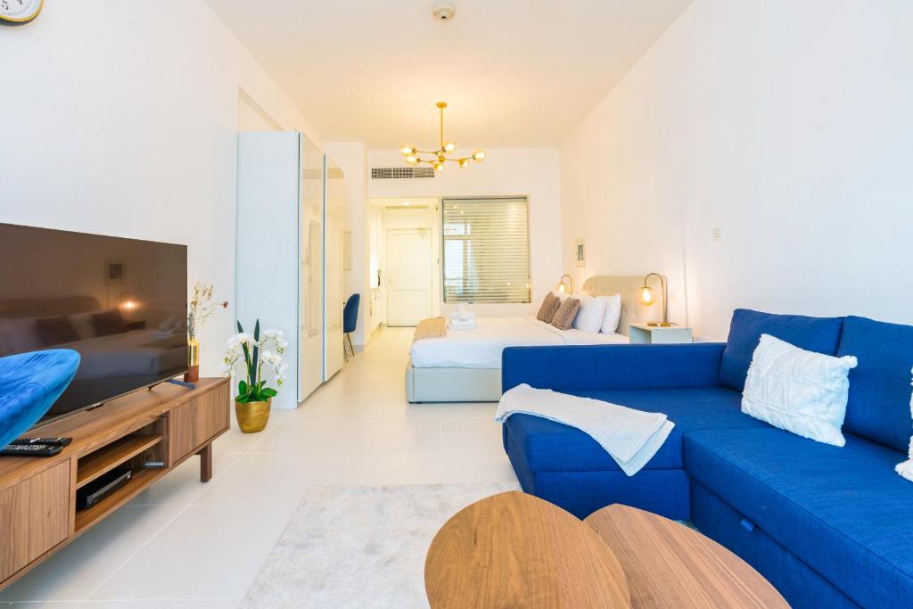استودیو باشکوه با چشمانداز خیرهکننده نخل در 16 کیلومتری مرکز دبی است. تمام فواصل در خطوط مستقیم اندازه گیری می شوند. مسافت واقعی سفر ممکن است متفاوت باشد.
