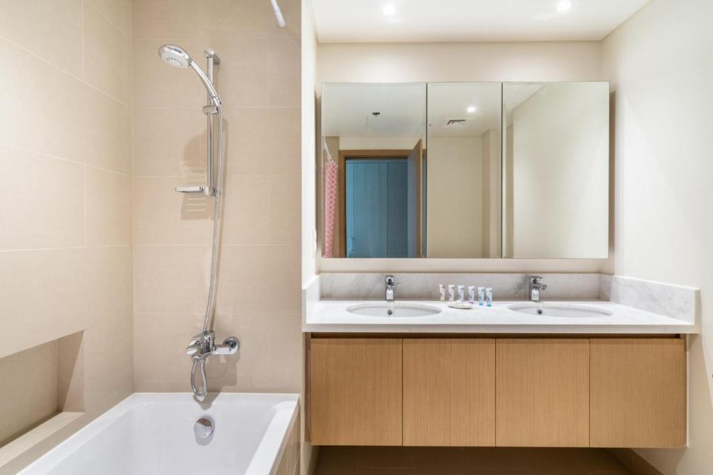 GuestReady - Sophistication Skyview Harbor در دبی، 7.8 مایلی تا فواره دبی و 8 مایلی از دبی مال، اقامتگاه ارائه می دهد. این ملک دسترسی به بالکن، پارکینگ خصوصی رایگان و وای فای رایگان دارد. این اقامتگاه دارای آسانسور و امنیت تمام روز برای مهمانان است. آپارتمان دارای 2 اتاق خواب، آشپزخانه کاملاً مجهز با اجاق گاز و مایکروویو، ماشین لباسشویی و 2 حمام با سشوار است. حوله و ملحفه در آپارتمان وجود دارد. محل اقامت غیر سیگاری است. مهمانان در GuestReady - Sophistication Skyview Harbor می توانند از فعالیت هایی مانند دوچرخه سواری در دبی و اطراف آن لذت ببرند. برج خلیفه 8.2 مایلی و مسجد جامع 8.2 مایلی از محل اقامت فاصله دارند. نزدیکترین فرودگاه، فرودگاه بینالمللی دبی است، در ۵ مایلی GuestReady - Sophistication Skyview Harbour. فاصله در توضیحات ملک با استفاده از © OpenStreetMap محاسبه میشود.