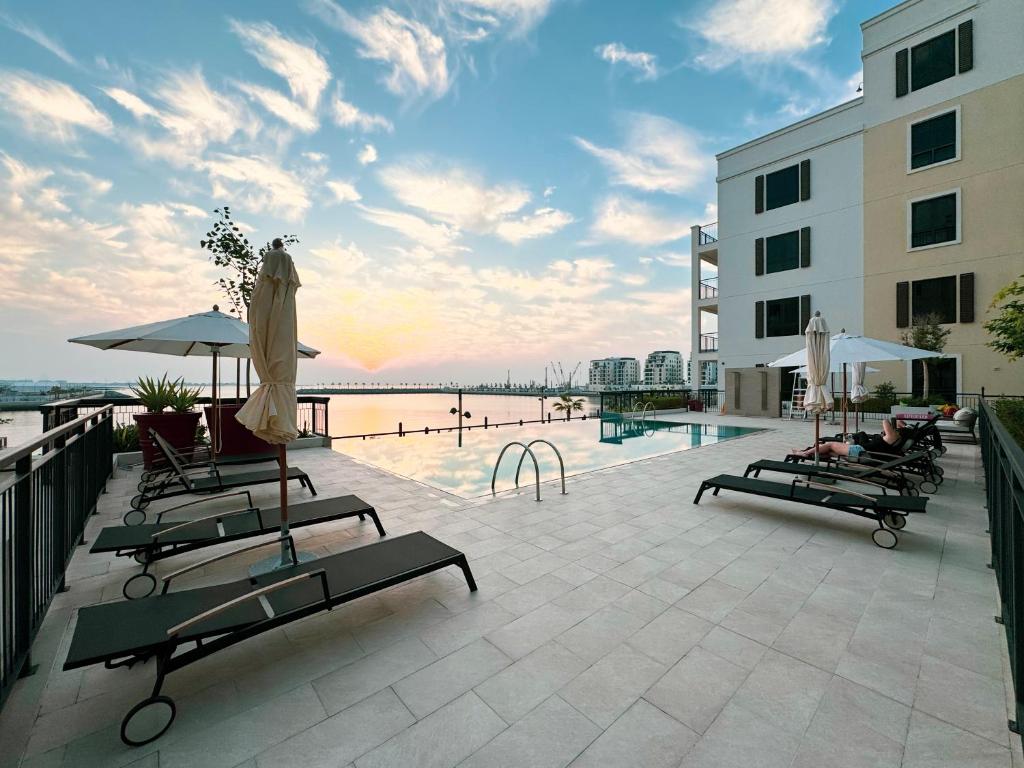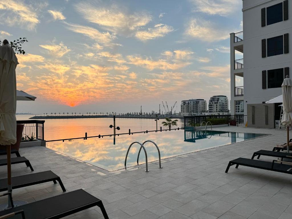 آیا یک استخر خصوصی برای مهمانانی که در آپارتمان یک تخته زیبا با منظره دریا در لامر، دبی اقامت دارند، در دسترس است؟