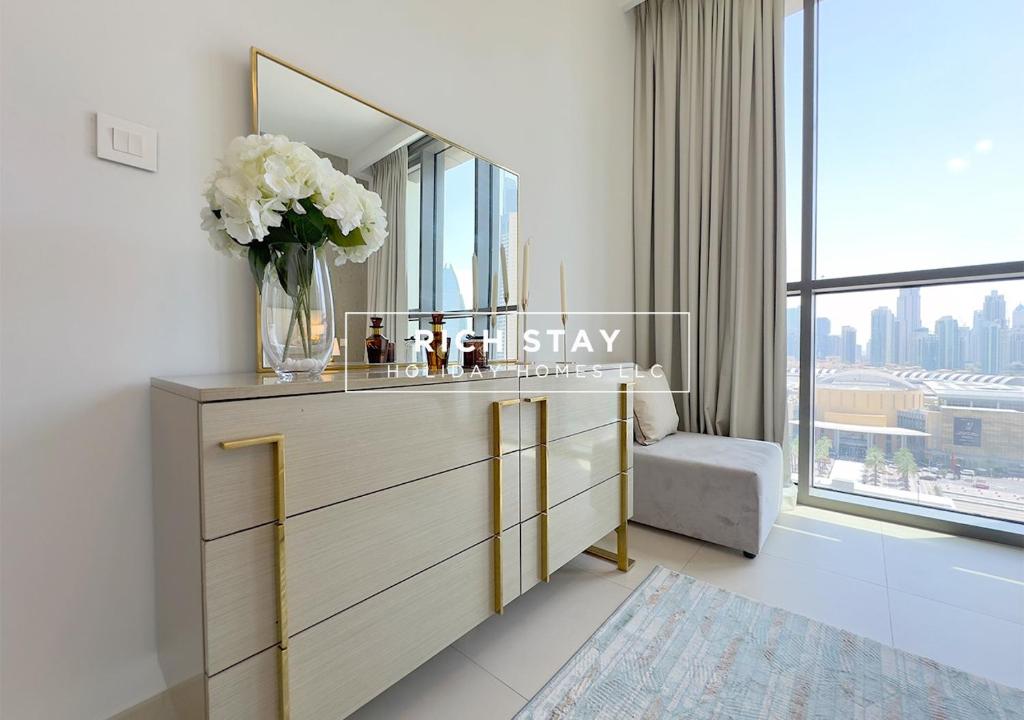 Premium 3BR با نمای برج خلیفه و دبی مال دارای 1 رستوران است: