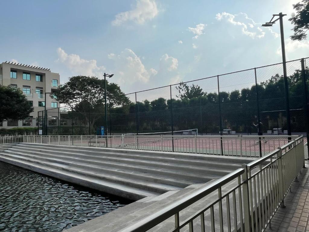 The Greens and Views در 3.6 مایلی از باشگاه گلف مونتگومری دبی در دبی، امکاناتی با دسترسی به مرکز تناسب اندام ارائه می دهد. این ملک دارای استخر روی پشت بام، وای فای رایگان و پارکینگ خصوصی رایگان است. این اقامتگاه دارای آسانسور، امنیت تمام روز و صرافی برای مهمانان است. این خانه تعطیلات دارای تهویه مطبوع شامل 2 اتاق خواب، اتاق نشیمن، آشپزخانه کاملاً مجهز با ماشین ظرفشویی و قهوه ساز و 2 حمام با دوش و سشوار است. حوله و ملحفه در خانه تعطیلات ارائه می شود. محل اقامت غیر سیگاری است. یک مینی مارکت در خانه تعطیلات موجود است. می توانید در خانه تعطیلات تنیس بازی کنید. مرکز خرید امارات 3.8 مایلی تا The Greens and Views و The Walk در JBR 4.9 مایلی فاصله دارد. نزدیکترین فرودگاه، فرودگاه بینالمللی آل مکتوم است که 18 مایل از محل اقامت فاصله دارد. فاصله در توضیحات ملک با استفاده از © OpenStreetMap محاسبه میشود.