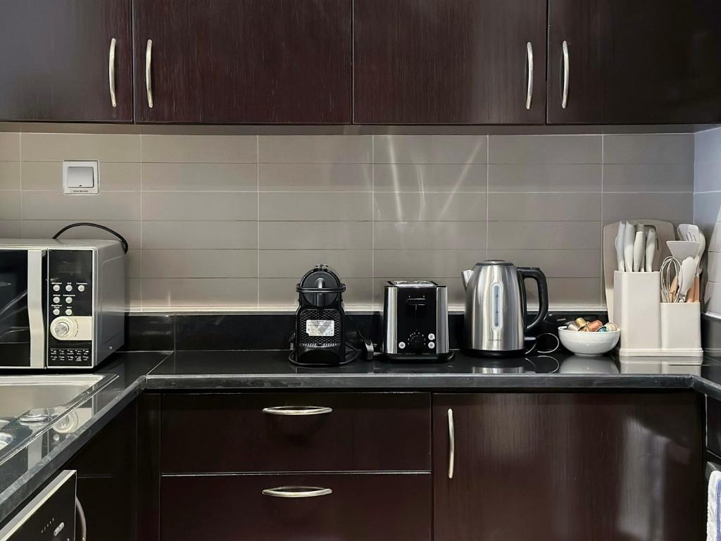 آپارتمان 1 خوابه Sunrise Views در ریزورت 5 ستاره در دبی واقع شده است و فقط 3 مایل از پارک آبی Aquaventure و 11 مایل از The Walk در JBR فاصله دارد. این اقامتگاه با تهویه مطبوع 8 دقیقه پیاده تا ساحل آنانتارا فاصله دارد. این اقامتگاه دارای یک مرکز تناسب اندام، وای فای رایگان در سراسر ملک و یک آسانسور است. این آپارتمان بزرگ دارای یک پاسیو و منظره دریا است و دارای 1 اتاق خواب، اتاق نشیمن، تلویزیون، آشپزخانه مجهز و 2 حمام با حمام است. حوله و ملحفه در آپارتمان ارائه می شود. محل اقامت غیر سیگاری است. مهمانان می توانند از استخر روباز و باغ در آپارتمان لذت ببرند. باشگاه گلف مونتگومری دبی 11 مایل از آپارتمان Sunrise Views 1BR در ریزورت 5 ستاره و برج برج العرب 11 مایل فاصله دارد. نزدیکترین فرودگاه، فرودگاه بینالمللی آل مکتوم است که در 25 مایلی محل اقامت است. فاصله در توضیحات ملک با استفاده از © OpenStreetMap محاسبه میشود.