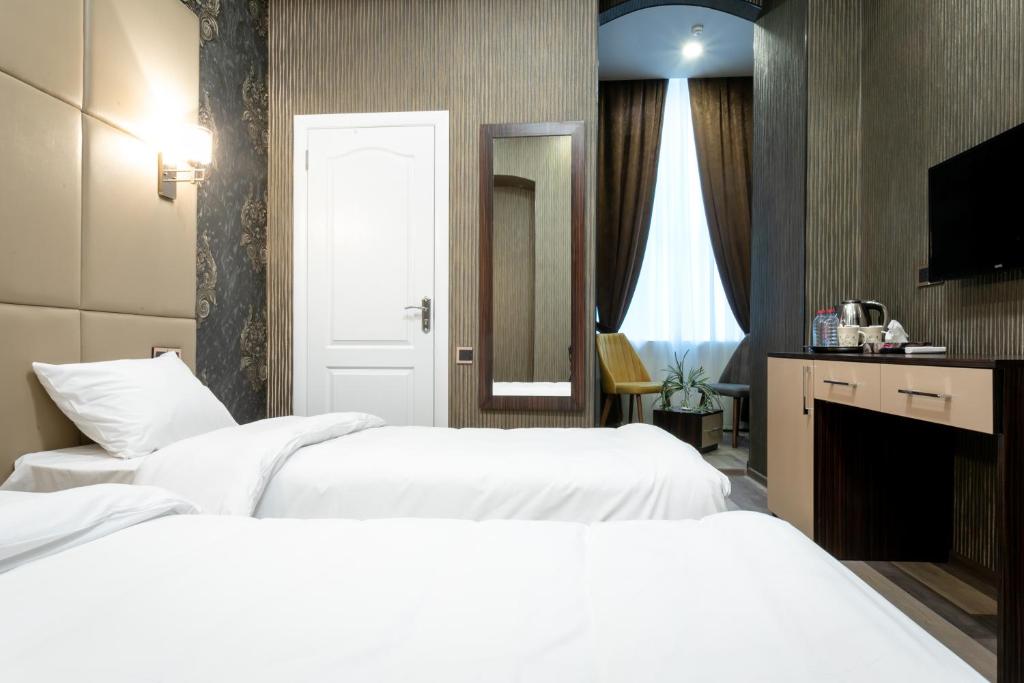 به محض ورود متوجه شدم که اتاق در طبقه همکف است و پنجره ندارد، اما آنها با پرداخت هزینه اضافی به من پیشنهاد ارتقاء با پنجره را دادند. بویی در اتاق ها می آمد، ظاهرا نه هود بود، نه یخچال. هیچ حوله ای برای دست و پا وجود نداشت، عایق صدا کم بود. اتاق دوش کمی کثیف بود، به طور کلی در صورت درخواست تمیز می شد.