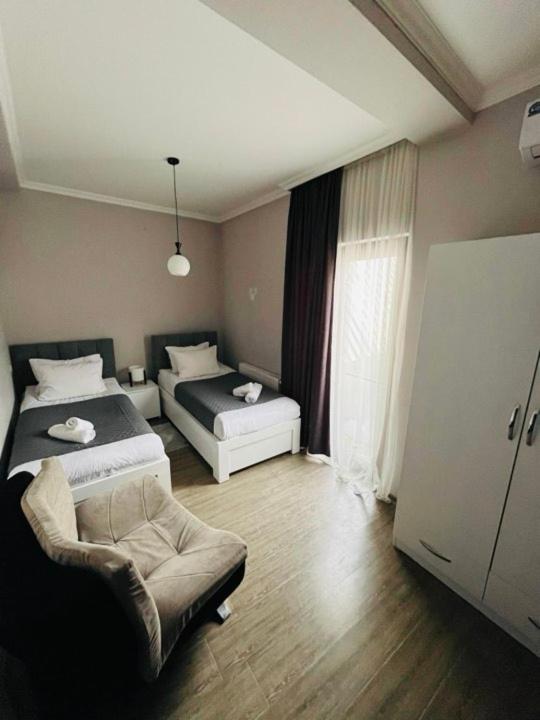 یک روز را در برجومی گذراندیم و در این مهمانسرا اقامت گزیدیم. اتاق تمیز و راحت بود و داشتن یک آشپزخانه مشترک یک مزیت بزرگ بود. من به خصوص تراس با چشم اندازهای خیره کننده از شهر را دوست داشتم. موقعیت مکانی عالی است - درست در مرکز، نزدیک به ایستگاه اتوبوس، اگرچه باید کمی از سربالایی بالا بروید. مهماندار بسیار مهربان و پاسخگو بود که به تجربه خوشایند اقامت افزود. قیمت برای چنین کیفیتی فقط موهبت الهی است. من آن را به شدت توصیه می کنم!