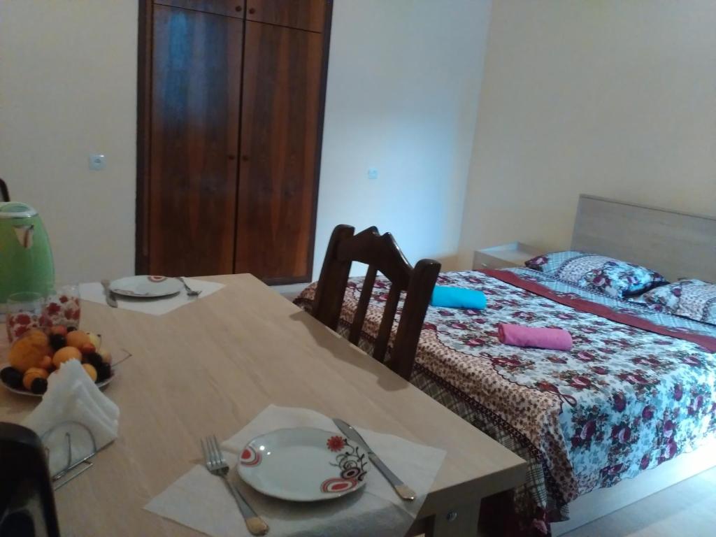 یک اتاق خوب ، تختخواب جادار و راحت ، یک کتری و مجموعه اصلی ظروف در اتاق وجود داشت. حمام موجود در راهرو ، همانطور که من آن را درک می کنم ، در آینده در دو اتاق خواهد بود ، زیرا در همسایه تعمیراتی وجود داشت. صاحب یک مرد بسیار دلپذیر ، قبلاً ما را حل و فصل کرد ، که بسیار راحت بود! این مکان در خانه خانه بسیار عالی است ، اما اگر شما از سربالایی های فراز و نشیب ها را دوست ندارید ، ممکن است برای شما خیلی راحت نباشد ، هرچند که تبیلیسی است ، در همه جا صعود می کند :) آنها ماشین را بدون هیچ مشکلی در کنار خانه مهمان قرار می دهند.