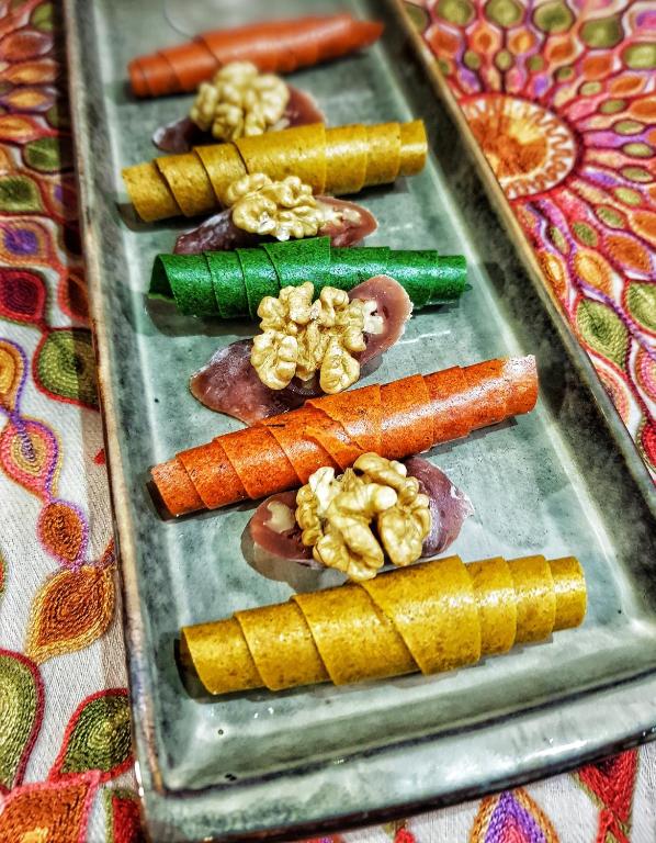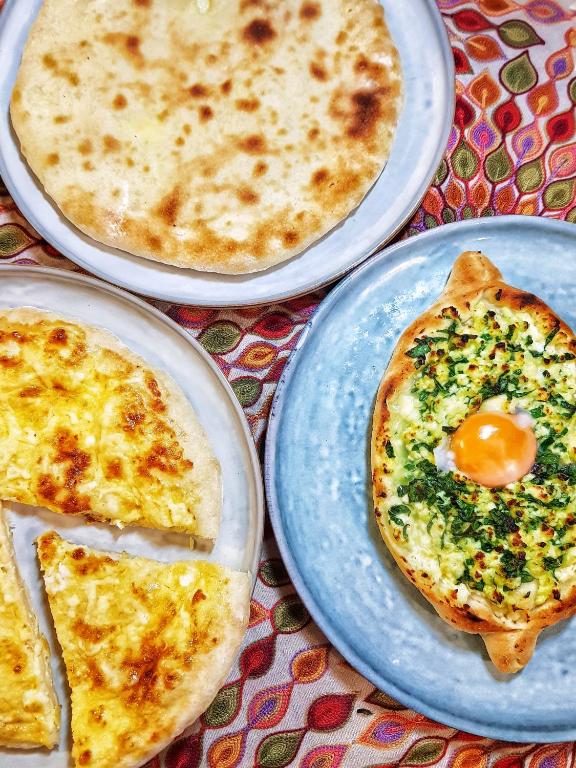 در آنجا صبحانه خوشمزه (شاکشوکا ، نان داغ تازه ، میوه و سبزیجات) را طعم می دهیم و همچنین شام خانگی دوست داشتنی داشتیم (Skmeruli ، سیب زمینی بسیار دلپذیر ، نان ذرت پنیر ...).