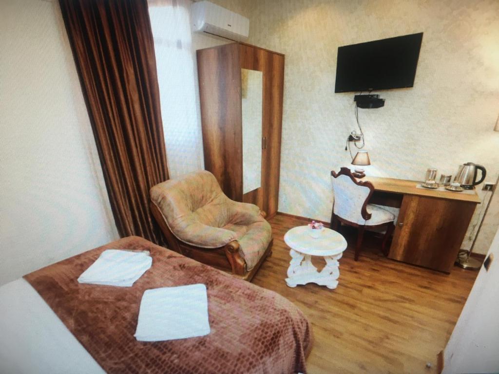 عصر بخیر از 06 تا 11 ژوئیه T.G. ما در یک اتاق دونفره زندگی می کردیم ، تعداد آن با بالکن در طبقه دوم بود ، جایی که با سحر آشنا شدیم! صبح با یک صبحانه خوشمزه آغاز شد! هر روز املت ها و بوفه های تازه تهیه شده ، Suluguni تازه و سوسیس. صاحب کیتی هتل ، یک زن بسیار دوستانه و خندان با بازخورد! او همیشه به شما خواهد گفت ، با تاکسی تماس می گیرد و با پول بسیار کمی انتقال جاذبه ها را ترتیب می دهد. من آن را توصیه می کنم!
