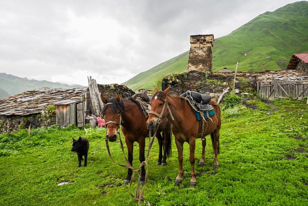 خانه در ushguli فوقانی نزدیک به یک نقطه دید خوب در روستا ، صبحانه های بزرگ و خوشمزه واقع شده است