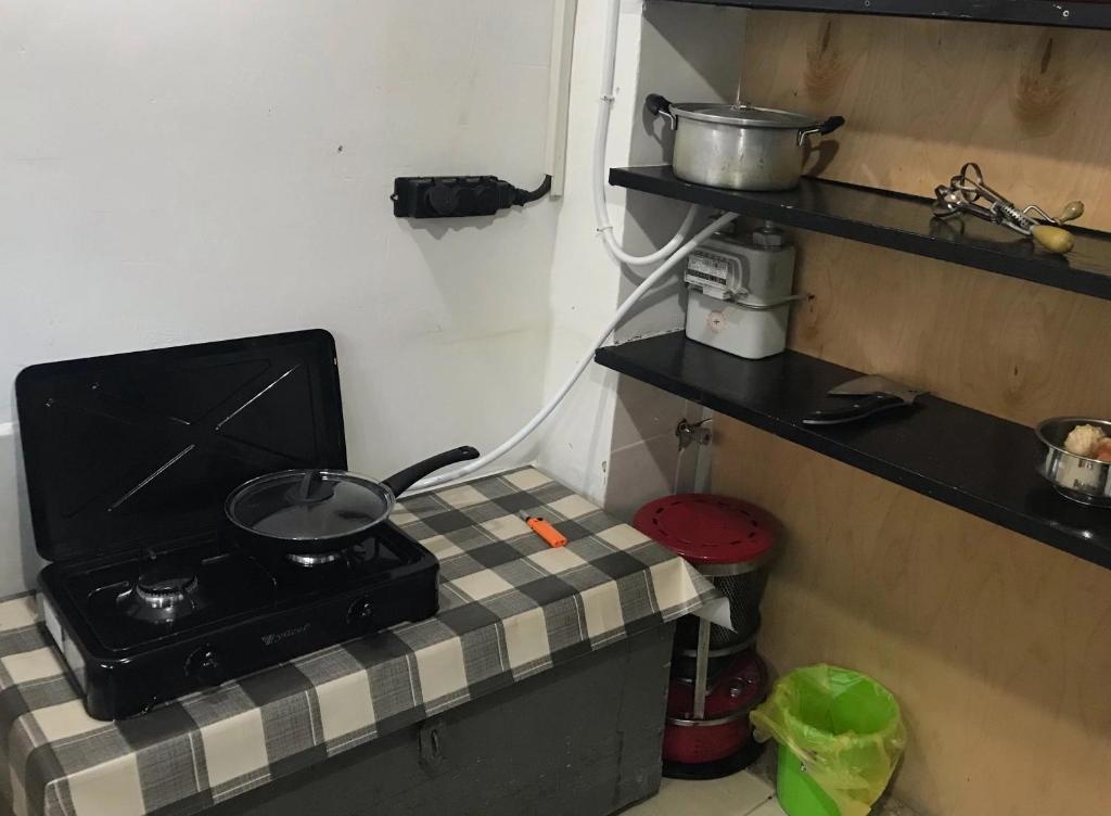 این یک مکان بسیار کوچک است ، حمام هیچ دری ندارد اما یک پرده ، کمی ترسناک است ، آشپزخانه چندان راحت نیست
