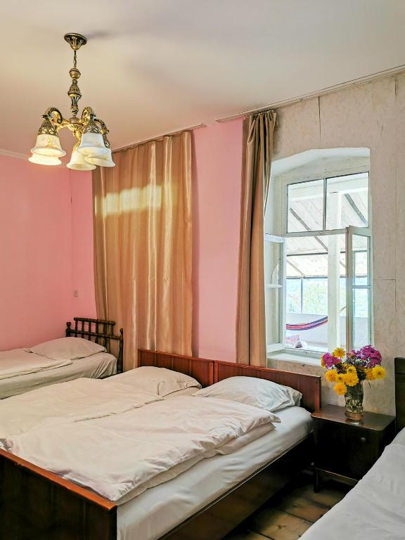 مهمان خانه در یک روستای کوچک. اتاق خواب، ایوان با منظره شگفت انگیز کوه. لالی میزبان بسیار خوش برخورد و مهمان نواز. لالی به طرز شگفت انگیزی خوشمزه می پزد و به درخواست شما نه تنها صبحانه، بلکه ناهار و شام را نیز به شما می دهد. اتاق های مهمان خانه کوچک، دو نفره هستند. یکی از اتاق ها دارای دوش و سرویس بهداشتی و بقیه دارای سرویس بهداشتی مشترک در طبقه همکف هستند. مستیا فقط ده کیلومتر فاصله دارد.