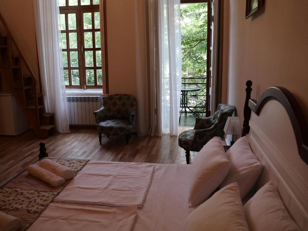 شروع از خانه تاریخی. به نظر می رسد که من بیش از 100 سال پیش در تفلیس بودم. درب جلو با یک پنجره شیشه ای رنگی رنگی. یک ورودی غیرمعمول ، تزئین شده با نسخه هایی از نقاشی های هنرمندان مشهور. یک پله چوبی با مراحل خزنده. یک آینه بزرگ در سایت وجود دارد. فضای داخلی اتاق گذشته تاریخی را در خانه حفظ می کند. تخت چوبی بزرگ. شومینه ، که روی آن یک آینه زیبا در یک قاب حک شده آویزان است. سقف چوبی با لوستر. یک مبل کوچک و دو صندلی به سبک آن زمان. mezzanine جالب ، با نردبان چوبی. یک آشپزخانه کوچک و یک حمام مناسب در زیر Atresol ساخته شده است. روی ویندوز کرکره های چوبی تاشو است. و یک بالکن کوچک جذاب با یک شبکه باز. و صاحب فوق العاده با نام زیبای Zezva ، که به حل هر مسئله کمک می کند. با تشکر از او