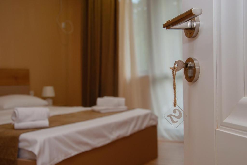 خیلی دور از برجومی، پیاده روی ناراحت کننده خواهد بود، جاده خیلی خوشایند نیست. تعداد زیادی حشرات بسیار کوچک در اتاق وجود دارد که حتی از طریق پشه بند پرواز می کنند. دوش بدون پهلو، اگر دوش بگیرید، آب هم به سینک و هم به توالت می رسد، اما چنین چیدمان دوش در گرجستان رایج است.