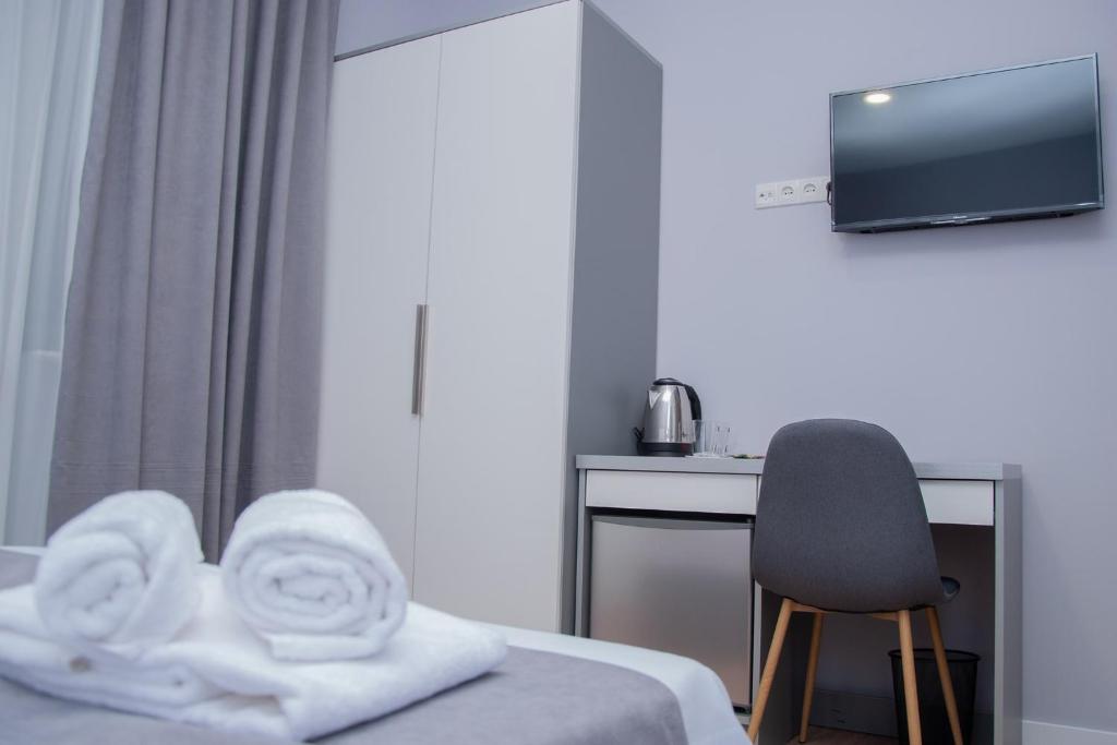 اتاق جدید، تمیز، شیک، کاملا مطابق با عکس ها. خیلی خوب است که در طبقه پایین هتل یک اتاق نشیمن و یک آشپزخانه با همه چیز شما نیاز دارید. به راحتی می توانید یک صبحانه ساده برای خود و فرزندتان تهیه کنید. کارکنان بسیار دوستانه و مفید هستند. می خواستیم یک شب بیشتر بمانیم، اما متاسفانه همه اتاق ها از قبل رزرو شده بودند.