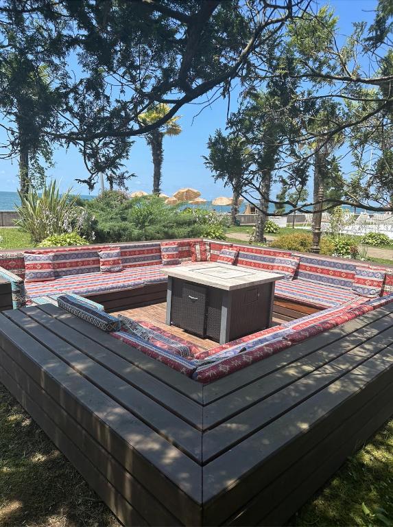 استودیوی دوست داشتنی کنار دریا با تراس در چاکوی، تنها چند قدمی ساحل چاکوی و 5.2 مایلی از قلعه پترا واقع شده است. این ملک ساحلی دسترسی به تراس دارد. آپارتمان دارای پارکینگ در محل، استخر آب شور، و نگهبانی تمام روز است. این آپارتمان 1 خوابه با Wifi رایگان، تلویزیون صفحه تخت، ماشین لباسشویی، و آشپزخانه کاملاً مجهز با مایکروویو و یخچال دارد. حوله و ملحفه در آپارتمان ارائه می شود. این ملک دارای فضای ناهار خوری در فضای باز است. میهمانان می توانند در رستوران خانوادگی هتل که برای شام، ناهار و برانچ باز است غذا بخورند. برای مهمانان دارای کودک، این آپارتمان دارای استخر کودکان است. یک منطقه ساحلی خصوصی در استودیوی Lovely کنار دریا با تراس، همراه با باغ وجود دارد. ایستگاه قطار باتومی 6.2 مایلی و بنای یادبود علی و نینو در 8.9 مایلی هتل قرار دارند. نزدیکترین فرودگاه، فرودگاه بینالمللی باتومی است، در ۱۲ مایلی استودیوی Lovely در کنار دریا با تراس. فاصله در توضیحات ملک با استفاده از © OpenStreetMapShow me more