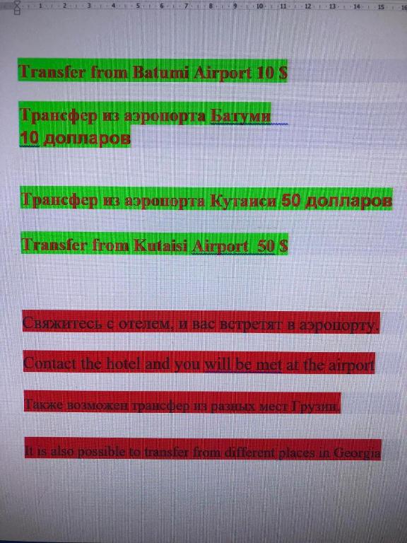 ممکن است واجد شرایط تخفیف اینجا تریپ در مهمانخانه نیکاس باشید. جهت بررسی اینکه آیا تخفیف Injatrip برای تاریخ های انتخابی شما در دسترس است، وارد شوید. تخفیف های نابغه در این ملک منوط به تاریخ رزرو، تاریخ اقامت و سایر معاملات موجود است. مهمانخانه نیکاس فقط 17 دقیقه پیاده تا کلیسای جامع میلاد مقدس مادر باکره و 1.1 مایل تا موزه باستان شناسی باتومی، دارای اقامتگاه هایی با باغ در باتومی است. این مهمانسرا که اخیراً بازسازی شده است در 1.8 مایلی ساحل باتومی و 2.1 مایلی از بنای علی و نینو قرار دارد. یک تراس آفتابگیر وجود دارد و مهمانان میتوانند به Wifi رایگان و پارکینگ خصوصی رایگان دسترسی داشته باشند. واحدها مجهز به حمام اختصاصی هستند و واحدهای خاصی در مهمانخانه دارای بالکن هستند. میهمانان می توانند در نزدیکی شومینه فضای باز در مهمانخانه استراحت کنند. نقاط دیدنی محبوب در نزدیکی مهمانخانه عبارتند از: پیاتزا، مسجد باتومی، و تله کابین آرگو. نزدیکترین فرودگاه، فرودگاه بینالمللی باتومی است، در 3.7 مایلی از مهمانخانه نیکاس. فاصله در توضیحات ملک با استفاده از © OpenStreetMapShow me more