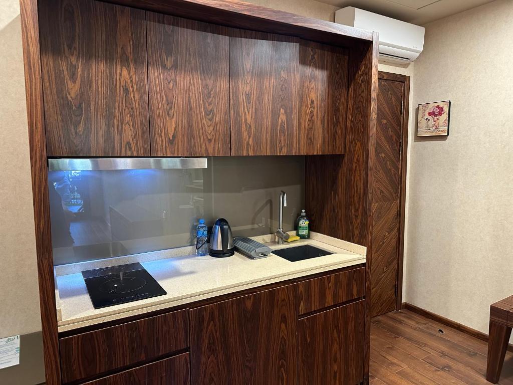 آپارتمان ساحلی با باغ خصوصی که دارای بار است، در چاکوی اقامت دارد. از جمله امکانات این ملک می توان به پذیرش 24 ساعته و نگهبانی تمام روز به همراه وای فای رایگان در سراسر ملک اشاره کرد. این استخر دارای سرسره آبی و منظره باغ است. این آپارتمان دارای 1 اتاق خواب، اتاق نشیمن و تلویزیون صفحه تخت، آشپزخانه مجهز با فضای ناهار خوری، و 1 حمام با دوش و ماشین لباسشویی است. میهمانان می توانند از تراسی که دارای مبلمان در فضای باز نیز می باشد، از مناظر استخر دیدن کنند. برای حفظ حریم خصوصی بیشتر، اقامتگاه دارای یک ورودی خصوصی است. میهمانان میتوانند در رستوران خانوادگی هتل که برای شام، ناهار، برانچ و کوکتل باز است، غذا بخورند. مهمانان می توانند از کلاس های یوگا که در خانه برگزار می شود استفاده کنند. برای مهمانان دارای کودک، آپارتمان دارای استخر کودکان و تجهیزات بازی در فضای باز است. آپارتمان ساحلی با باغ خصوصی دارای باغی است که می توانید در آن استراحت کنید، همراه با یک منطقه ساحلی خصوصی. ساحل چاکوی در چند قدمی اقامتگاه، در حالی که قلعه پترا 5.1 مایل از ملک فاصله دارد. فرودگاه بین المللی باتومی 12 مایل دورتر است. فاصله در توضیحات ملک با استفاده از © OpenStreetMapShow me more