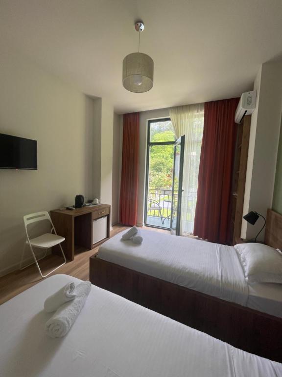 ممکن است واجد شرایط تخفیف اینجا تریپ در ویلا فلور باشید. جهت بررسی اینکه آیا تخفیف Injatrip برای تاریخ های انتخابی شما در دسترس است، وارد شوید. تخفیف های نابغه در این ملک منوط به تاریخ رزرو، تاریخ اقامت و سایر معاملات موجود است. ویلا فلورا واقع در گونیو، 3 دقیقه پیاده از ساحل گونیو، دارای اقامتگاه هایی با باغ، پارکینگ خصوصی رایگان، سالن استراحت مشترک و امکانات باربیکیو است. هتل با وای فای رایگان که حدوداً 4 دقیقه پیاده تا ساحل کواریاتی فاصله دارد، 1.3 مایل تا قلعه گونیو نیز فاصله دارد. این ملک یک آشپزخانه مشترک، سرویس اتاق و انبار چمدان را برای مهمانان فراهم می کند. اتاق های هتل دارای تهویه مطبوع، میز تحریر، تراس با منظره دریا، حمام اختصاصی، تلویزیون صفحه تخت، ملحفه و حوله می باشند. همه اتاق ها دارای چای خوری برقی هستند، در حالی که برخی از اتاق ها دارای بالکن و برخی دیگر دارای چشم انداز کوه هستند. همه اتاق ها به مهمانان یخچال مجهز می شوند. می توانید در ویلا فلورا دارت بازی کنید. کارکنان که به زبان های انگلیسی، گرجی و روسی صحبت می کنند، مایلند در پذیرش 24 ساعته به شما کمک کنند. بنای یادبود علی و نینو 10 مایلی و ایستگاه قطار باتومی 11 مایلی از هتل فاصله دارد. فرودگاه بینالمللی باتومی 7.5 مایل دورتر است. زوجها بهویژه موقعیت مکانی را دوست دارند - برای یک سفر دو نفره به آن امتیاز 9.4 دادهاند. فاصله در توضیحات ملک با استفاده از © OpenStreetMapShow me more