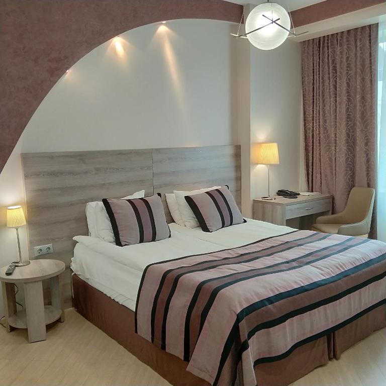 ممکن است واجد شرایط تخفیف اینجا تریپ در هتل AC باشید. جهت بررسی اینکه آیا تخفیف Injatrip برای تاریخ های انتخابی شما در دسترس است، وارد شوید. تخفیف های نابغه در این ملک منوط به تاریخ رزرو، تاریخ اقامت و سایر معاملات موجود است. هتل AC واقع در آدلر، 492 فوت از ساحل دریای سیاه، دارای یک مجموعه اسپا با طیف وسیعی از ماساژ و سونای فنلاندی است. این هتل در مجموع دارای 40 اتاق میهمان است که از اتاقهای استاندارد هتل با حمام خصوصی گرفته تا اتاقهای خانوادگی بزرگتر که نشیمن با پلان باز و جادار را ارائه میکنند، را شامل میشود. بسیاری از آنها بالکن خود را دارند. این ملک دارای یک بار و یک رستوران است که طیف وسیعی از غذاها را سرو می کند. صبحانه روزانه در هتل سرو می شود. فرودگاه بینالمللی سوچی-آدلر در 11 دقیقه رانندگی از هتل AC است. فاصله در توضیحات ملک با استفاده از © OpenStreetMapShow me more