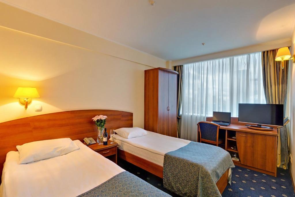 معایب شامل موارد زیر است: یخچال کار نمی کرد، در بالا گرم بود - ظاهرا فریون تبخیر شده بود. همیشه آب گرم در شب وجود نداشت. نزدیکی هتل به خیابان لنینگرادسکی به دلیل سر و صدای مداوم ترافیک اجازه باز کردن پنجره برای تهویه را نمی داد.