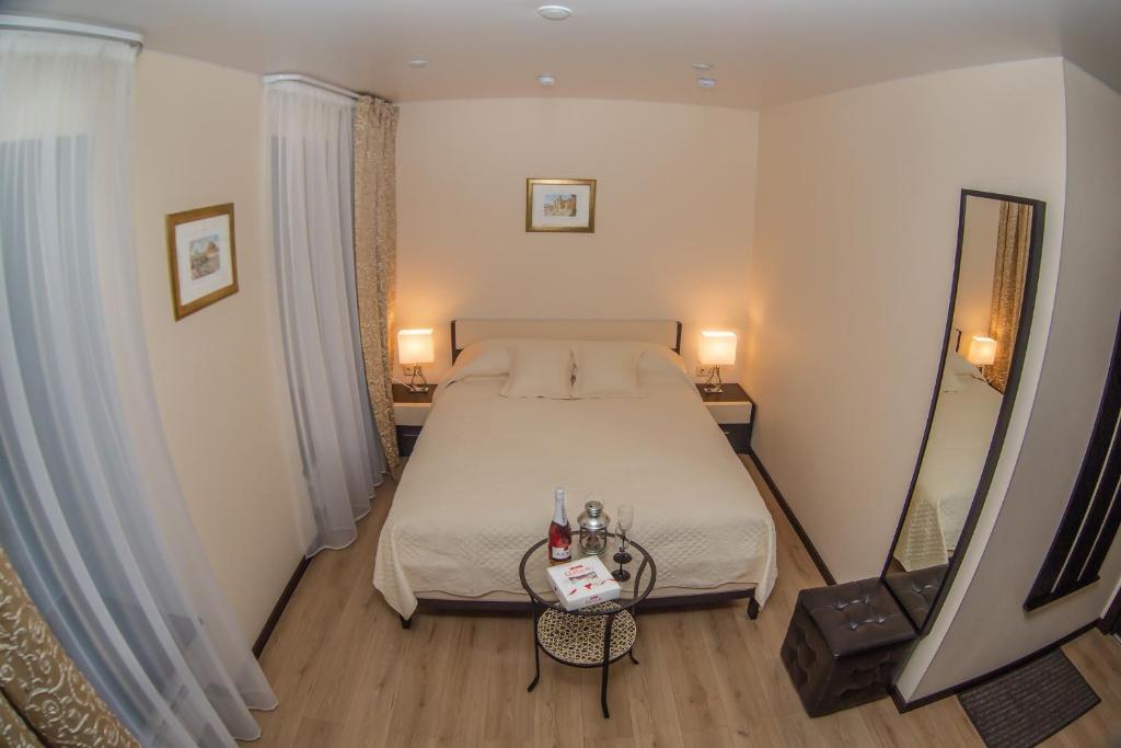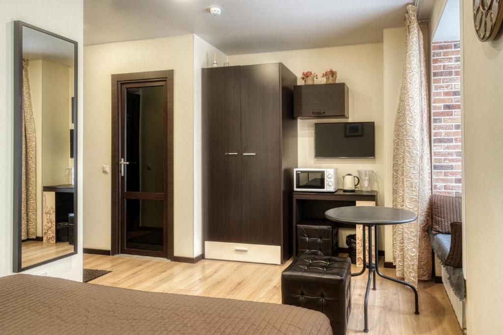 - اتاق برای دو نفر خیلی کوچک است. چند روز بعد یکی از دوستانمان به اتاق کناری نقل مکان کرد. او تنها بود، اما یک اتاق بزرگ داشت که ما انتظارش را داشتیم. اگر یکی دو روز بروید، این اتاق خوب است، اما برای یک هفته جای دو نفر کافی نیست، با توجه به اینکه به دلیل باران مجبور بودیم اغلب در اتاق بمانیم. - میز کوچک و نامناسب است: آنها در حالی که روی تخت نشسته بودند، غذا را روی میزهای کنار تخت می گذاشتند، غذا می خوردند. وقتی همه کافه ها و رستوران ها تعطیل هستند، باید در اتاق خود غذا بخورید. انجام این کار در اینجا بسیار ناخوشایند بود. - چیزی برای نشستن نیست جز تخت و طاقچه: یک عثمانی زیر چوب لباسی. اما با توجه به این واقعیت که فضای کافی وجود ندارد، بیشتر در اتاق جا نمی شود. - طبقه اول مشرف به حیاط و پارکینگ است، اگرچه طاقچه های پنجره شما را به خوردن قهوه، کتاب و رویا دعوت می کند)))