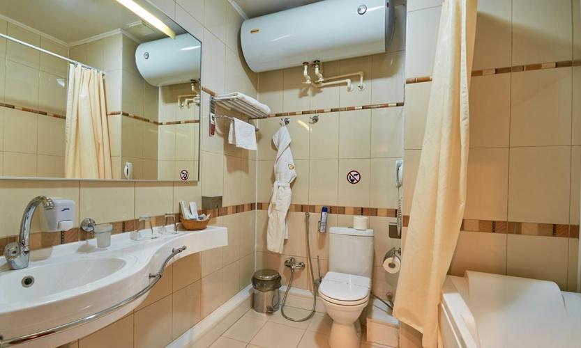 حداکثر هتل (با یک تداخل بزرگ) مطابق با طبقه بندی بین المللی با 3 ستاره مطابقت دارد. رانندگی با ماشین به هتل غیرممکن است. یعنی اگر با مقداری چمدان روی چرخ ها یا کودک سفر می کنید ، قطعاً این هتل برای شما نیست! صاحب هتل با کاشی وسواس دارد. کافل - همه جا: از ورودی هتل به اتاق. با توجه به این واقعیت که کاشی ها ، حتی در سطح رمپ برای اتومبیل ها ، شما نمی توانید از آن در زمستان استفاده کنید ، زیرا دستگاه ها شکسته می شوند. چرا این رمپ را بسازید ، اگر به هر حال نمی توانید از آن استفاده کنید ، یک راز باقی مانده است. صبحانه ارزان ترین و ضعیف ترین محصولات با کیفیت استفاده می شود. مجموعه ای وجود دارد ، آن را به خوبی پخته می شود ، اما به دلیل کیفیت پایین غیرممکن است.