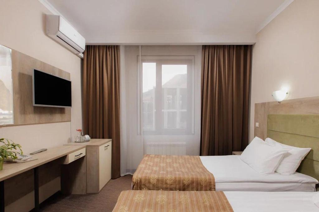 موقعیت مکانی هتل بسیار مناسب است، نزدیک به تله اسکی، نزدیک به فروشگاه، سینما، ایستگاه اتوبوس و باشگاه. اتاق ها تمیز و راحت هستند. بعد از اسکی یک منطقه خشک کردن وسایل و تجهیزات وجود دارد. سونا و رستورانی وجود دارد که غذاهای قفقازی سرو می کند، اما من آنجا نرفته ام!