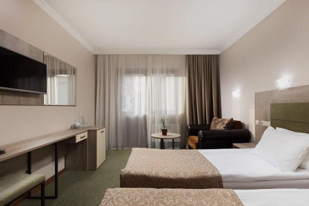 هتل خوب با اتاق های تمیز! اتاق "استودیو" از نظر اندازه بسیار راحت است، اتاق دارای یخچال، سشوار، میز، صندلی راحتی است (البته، بهتر است آن را با چیزی مدرن تر جایگزین کنید)، بالکن یک مزیت بزرگ بود! کارکنان پاسخگو هستند، کمک می کنند و مشاوره می دهند. یک خشک کن برای تجهیزات اسکی و یک سرویس رفت و برگشت به آسانسورهای اسکی وجود دارد. من به همه کسانی که قصد اسکی کردن در دامنه های گورکا گورود را دارند توصیه می کنم در نظر داشته باشند که پیاده روی تا گذرگاه عابر پیاده 10-15 دقیقه طول می کشد تا با تجهیزات عبور کنید !