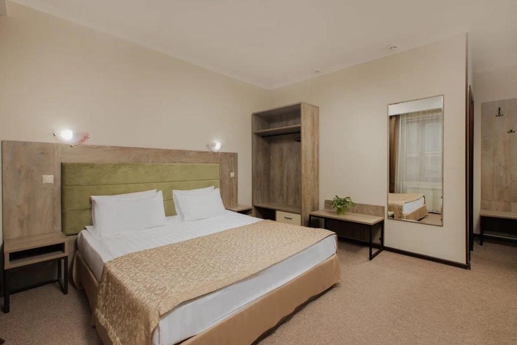 از موقعیت مکانی هتل خوشم آمد. شب اول را در اتاقی رو به جاده گذراندم - پر سر و صدا. با اولین درخواستم به اتاقی ساکت و مشرف به حیاط و تازه بازسازی شده منتقل شدم. در طبقه پایین هتل رستورانی وجود دارد که می توانید صبحانه را با قیمت مناسب میل کنید و قهوه، ناهار و شام میل کنید.