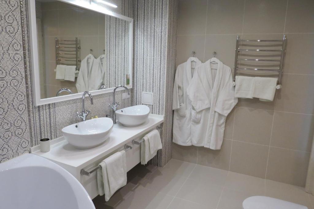 صبح، آب شیر در پذیرایی کمی گرم بود، گفتند فشار در مخزن کاهش یافته است، اما حتی بعد از یک ساعت گرمتر نشد. اتاق بسیار گرم است، اگر نه کمی گرم. تهویه مطبوع وجود دارد اما ما برای آن ریموت کنترل پیدا نکردیم. در هنگام صبحانه به دلیل اینکه مهمانان زیاد بودند و پیشخدمت تنها بود، مشکلی پیش آمد. با توجه به اینکه درب ورودی اتاق بسیار نازک است، از راهرو قابلیت شنیدن بالایی دارد.
