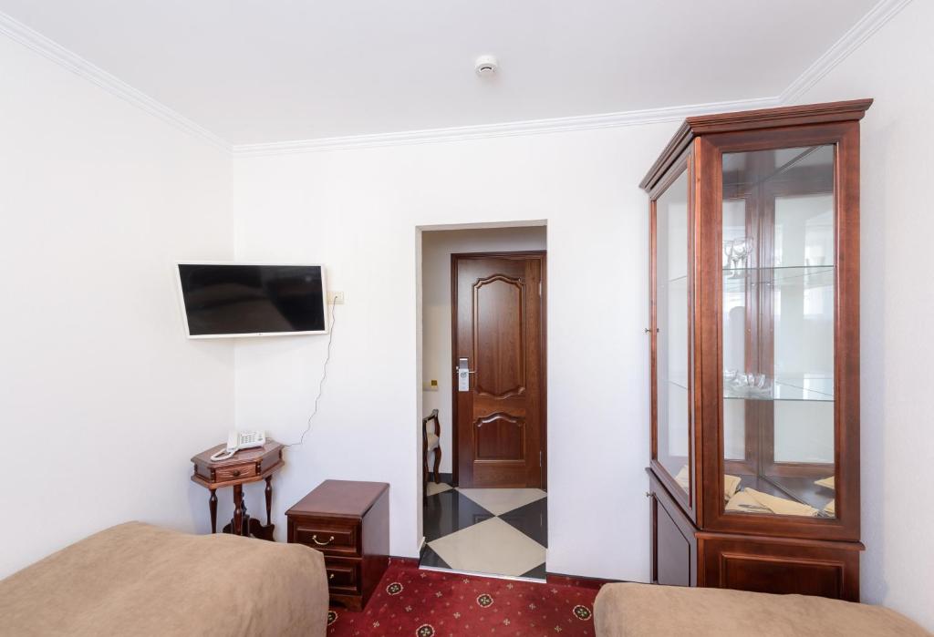 در ابتدا آنها می خواستند ما را به اتاق کنار راه پله بر روی رستوران جمع کنند ، اگرچه در ابتدا یکی از شرایط گفته می شد که ما به سکوت احتیاج داریم. برای جراحی به فرش رسیدیم. بعد از اینکه امتناع کردیم ، ناگهان رزرو کسی از بین رفت و به ما تعداد متفاوتی با کف بالا پیشنهاد شد. این تعداد برای مدت طولانی خسته است. درب حمام بسته نشده است (در جایی در وسط قرار گرفته است) ، در حدود یک سوم بسته شده و باز می شود. از حدود ساعت 18.00 ، موسیقی در رستوران شروع به پخش با صدای بلند ، گاهی اوقات تا 23.00 و گاهی اوقات تا ساعت 01.00 صبح می کند. روز شنبه ، هنگامی که تا یک صبح یک دیسکو وجود داشت ، همه میهمانان می دانستند که آنها جشن تولد وی را جشن می گیرند و بعد از آن یک سلام در مقابل پنجره های هتل وجود دارد. قیمت آن برای شماره ای که این پول را ندارد بسیار زیاد است.