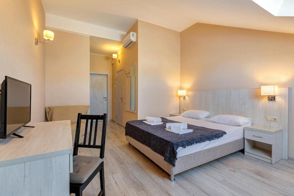 مهمانخانه بلا ویستا دارای اتاق های تهویه مطبوع در گلندژیک است. مهمانان می توانند از دسترسی به تراس آفتابگیر و استخر فصلی در فضای باز لذت ببرند. این اقامتگاه دارای پذیرش 24 ساعته، ترانسفر فرودگاهی، امنیت تمام روز و وای فای رایگان است. در مهمانخانه، واحدها مجهز به میز، تلویزیون صفحه تخت، حمام اختصاصی، ملحفه و حوله هستند. بالکن با ناهار خوری در فضای باز و منظره استخر در واحدهای منتخب ارائه می شود. اتاق ها مجهز به امکانات گرمایشی هستند. هر روز صبح یک صبحانه قاره ای با غذاهای گرم و پنکیک در این هتل سرو می شود. برای مواقعی که ترجیح میدهید بیرون غذا نخورید، میتوانید روی باربیکیو غذا بپزید. این مهمانسرا دارای یک منطقه پیک نیک است که می توانید روز خود را در فضای باز سپری کنید. ساحل گلوبایا بوختا 6 دقیقه پیاده از مهمانخانه فاصله دارد، در حالی که گالری آبی در 7.6 مایل فاصله دارد. فاصله در توضیحات ملک با استفاده از © OpenStreetMap محاسبه می شود.