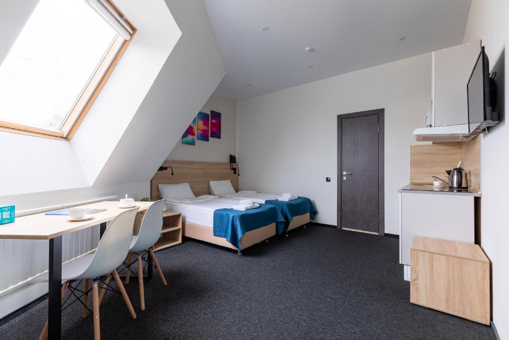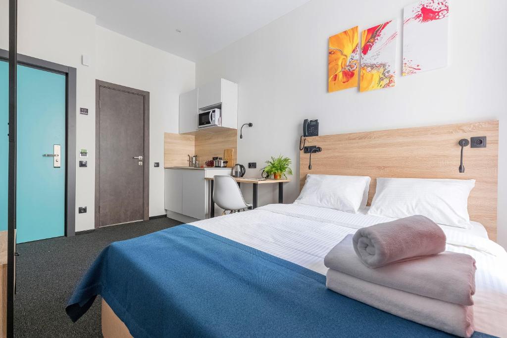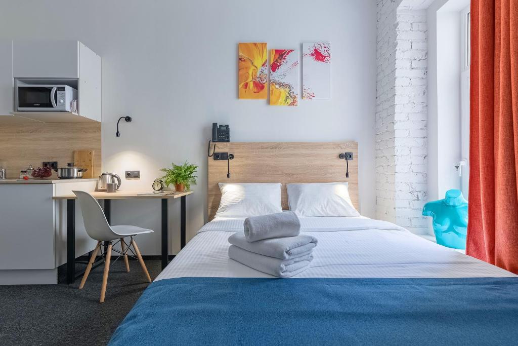 تمیزی، طراحی مدرن، موقعیت مکانی، اتاق هر 2-3 روز تمیز می شد، می توانید همه چیز را از کارکنان بپرسید، در مورد مسائل مختلف مشورت کنید. موقعیت هتل را خیلی دوست داشتم: نزدیک به مترو، SPAR، بارها در روبینشتینا، 30 دقیقه پیاده روی تا میدان قصر. اتاق یک مینی آشپزخانه با بشقاب ها، ماهیتابه، قابلمه، یخچال کوچک داشت... واقعاً می توانید خودتان آشپزی کنید. من در ژانویه در طبقه زیر شیروانی زندگی می کردم - نمی توانم بگویم سرد بود، اما گرم هم نبود - در کل تقریبا راضی بودم. آب گرم هم مشکلی نداشت.