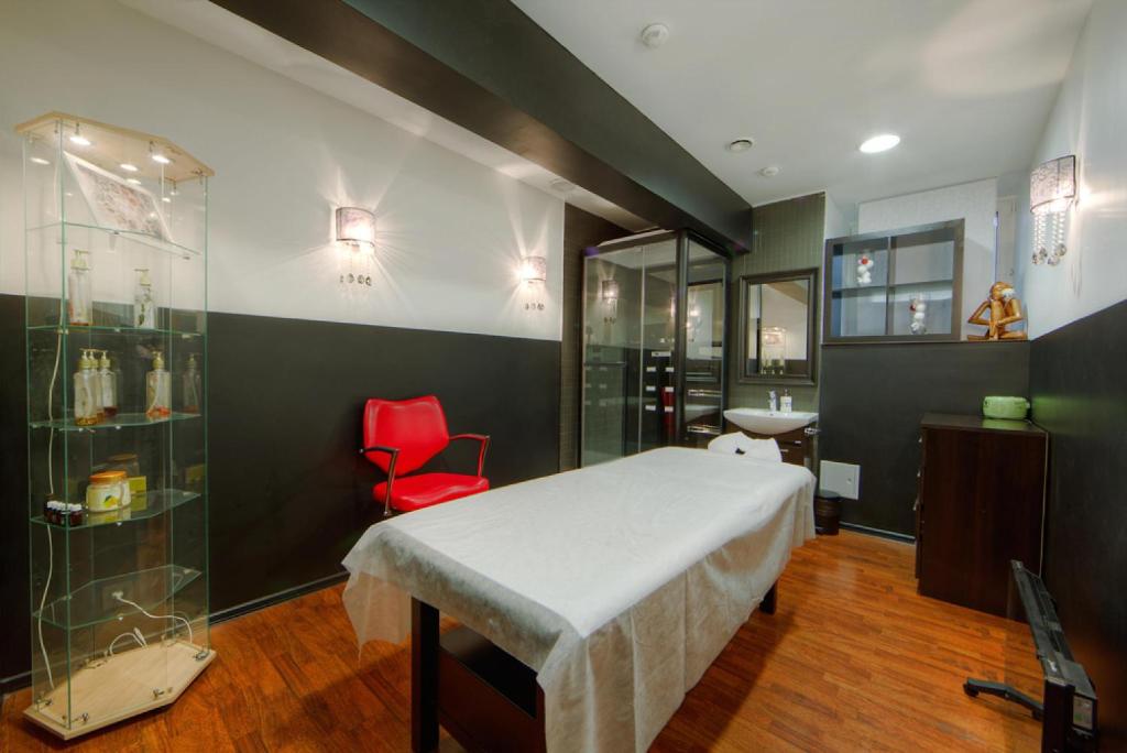 در حمام سرد است. در پذیرایی ، میهمان دیگری از سرماخوردگی در اتاق شکایت کرد (به خصوص در خیابان یخ زده نبود). کابین دوش کوچک. هیچ راه آهن حوله گرم وجود ندارد. بدون لباس اندازه کوچک حوله ها. سشوار ثابت قدیمی. یک چیدمان عجیب اتاق: یک سوئیچ اصلی توسط یک تخت ، یک سوکت از طرف دیگر. برخی از پارچه های غیرقابل درک روی تختخوابها ، پرده های مبهم که گرد و غبار را جمع می کنند. دختر در پذیرش و بارمن در نوار بدون ماسک بود.