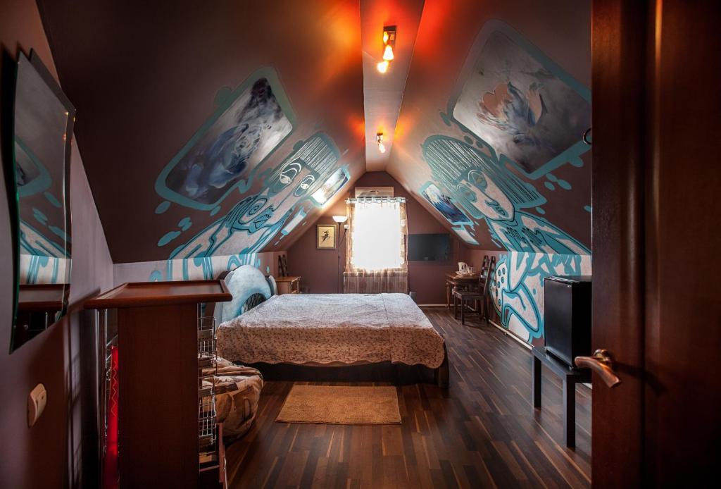 غذا در پیتزا فروشی همسایه وحشتناک است. آشپزی بلد نیستند آنها موفق شدند پیتزا و چیزکیک ها را خراب کنند. تنها مزیت قهوه دستگاه قهوه ساز است که بسیار خوب است. موقعیت مکانی کمی از مرکز فاصله دارد، اما قیمت اتاق این را جبران می کند. طراحی منحصر به فرد اتاق ها به عنوان مثال، من یک تخت به شکل یک ماشین داشتم. کمی عجیب است، اما بر راحتی قرارگیری تأثیر نمی گذارد :)