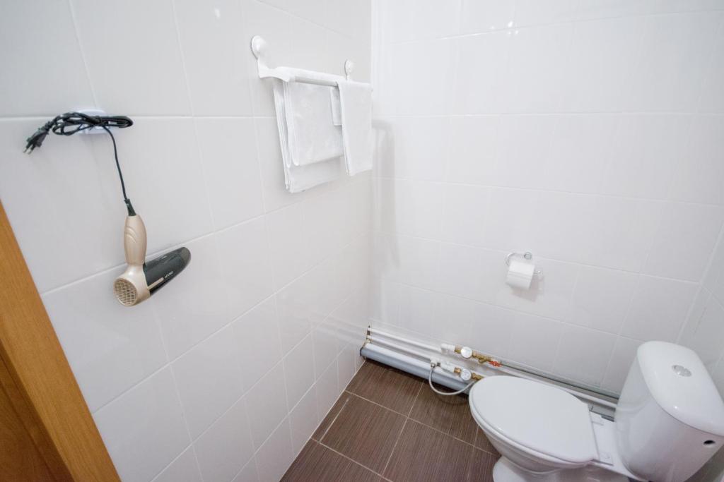 تعمیر از ارزانترین مواد ساخته شده است و همه چیز از هم پاشیده می شود. درب جلوی آن آویزان است ، سوکت ها به صورت کج نصب شده اند ، Tees (سلام ، 90s) در آنها می چسبند ، روی یک دیوار یک شکاف در گچ ، چسباندن دوش نیز روی یک کلمه صادقانه نگه می دارد. ساختمان خارج مانند انبار یا یک فروشگاه به نظر می رسد. شنوایی عالی ، شبانه کسی در امتداد راهرو دوید و خندید.
