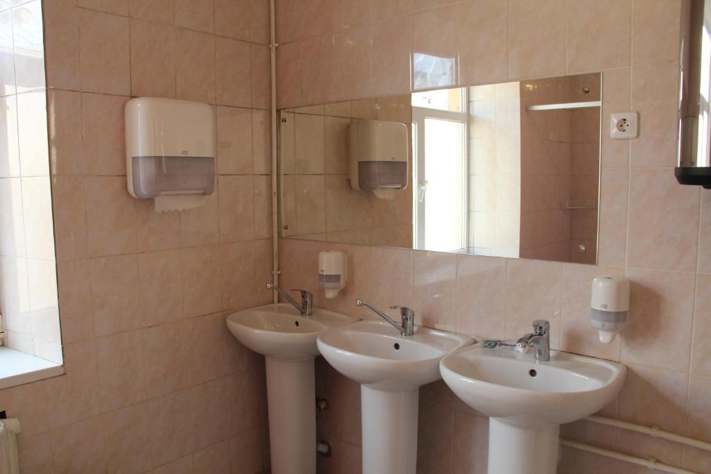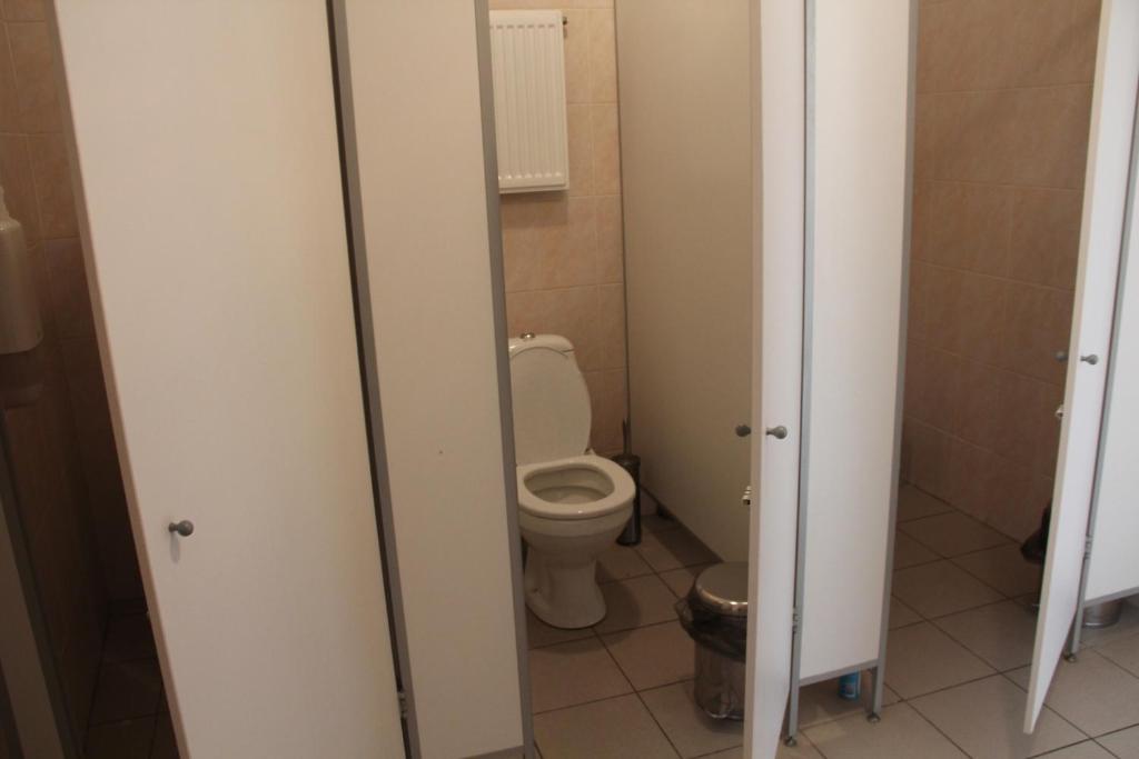 در دوش توالت زنانه در همان اتاق با دستشویی. دیوارها نازک هستند ، می توانید بشنوید که چه اتفاقی در توالت از طریق دو راهرو می افتد. اتاق کاملاً باحال است.