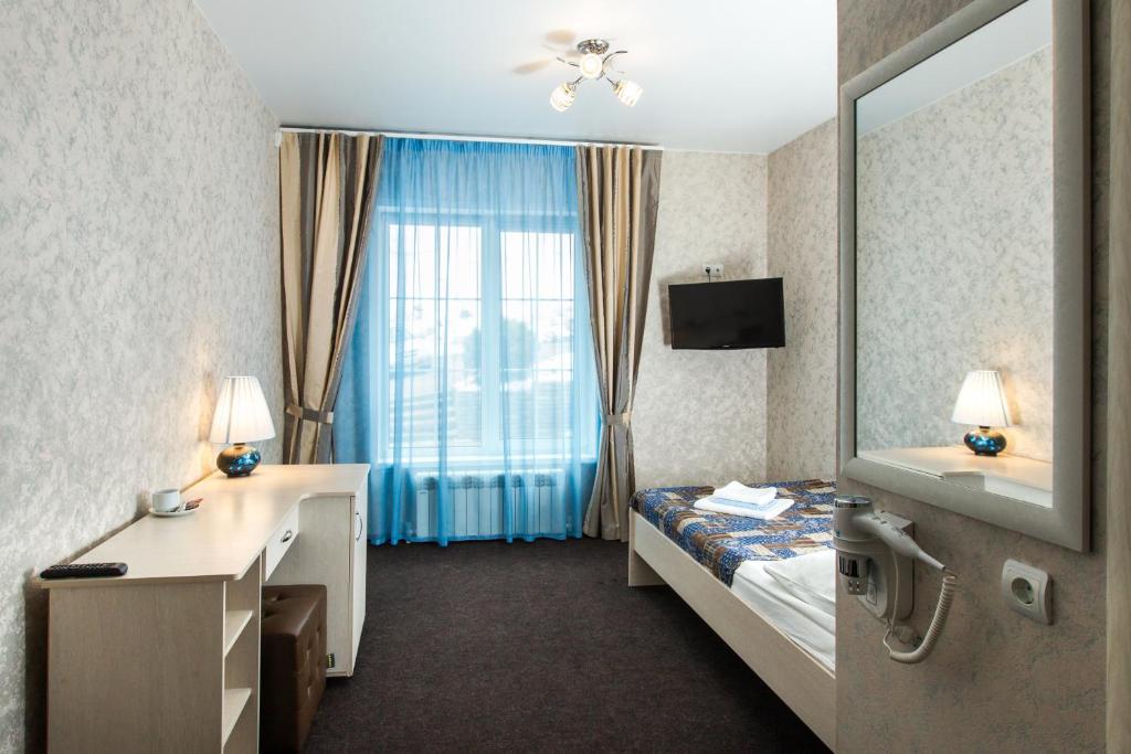 اتاق بزرگ و راحت است، میزهای کنار تخت، میز تحریر، یخچال، کمد لباس و چوب لباسی با نوار در بالا و پایین وجود دارد. دوش و توالت راحت است. هتل در مرکز واقع شده است و جاذبه های زیادی در آن نزدیکی است. کلیسای جامع 10 دقیقه با مرکز عابر پیاده، گالری هنری، پارک اصلی و مکان های جالب دیگر فاصله دارد. در راهرو یک کولر وجود دارد. در طبقه پایین در اتاق ناهارخوری می توانید در هر زمان غذا سفارش دهید. ممکن است خیلی متنوع نباشد، اما گرسنه نخواهید شد - به علاوه صبحانه، در قیمت اتاق گنجانده شده است.
