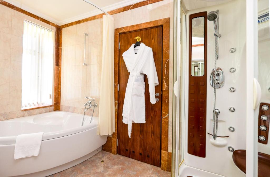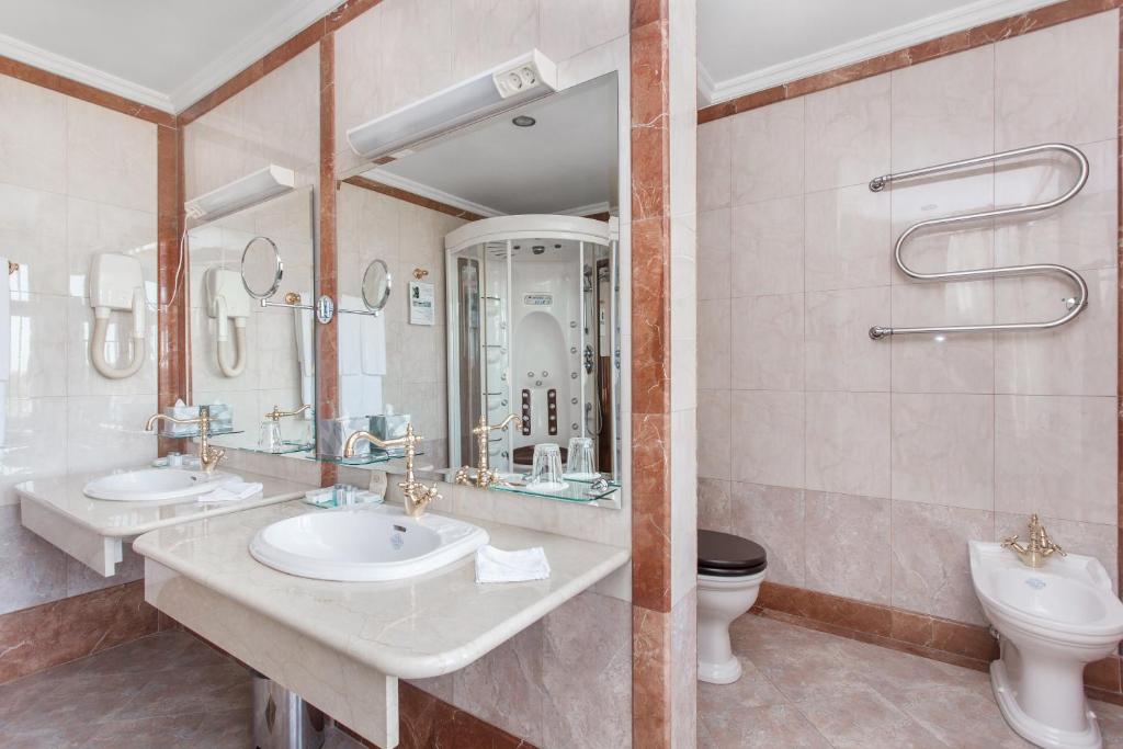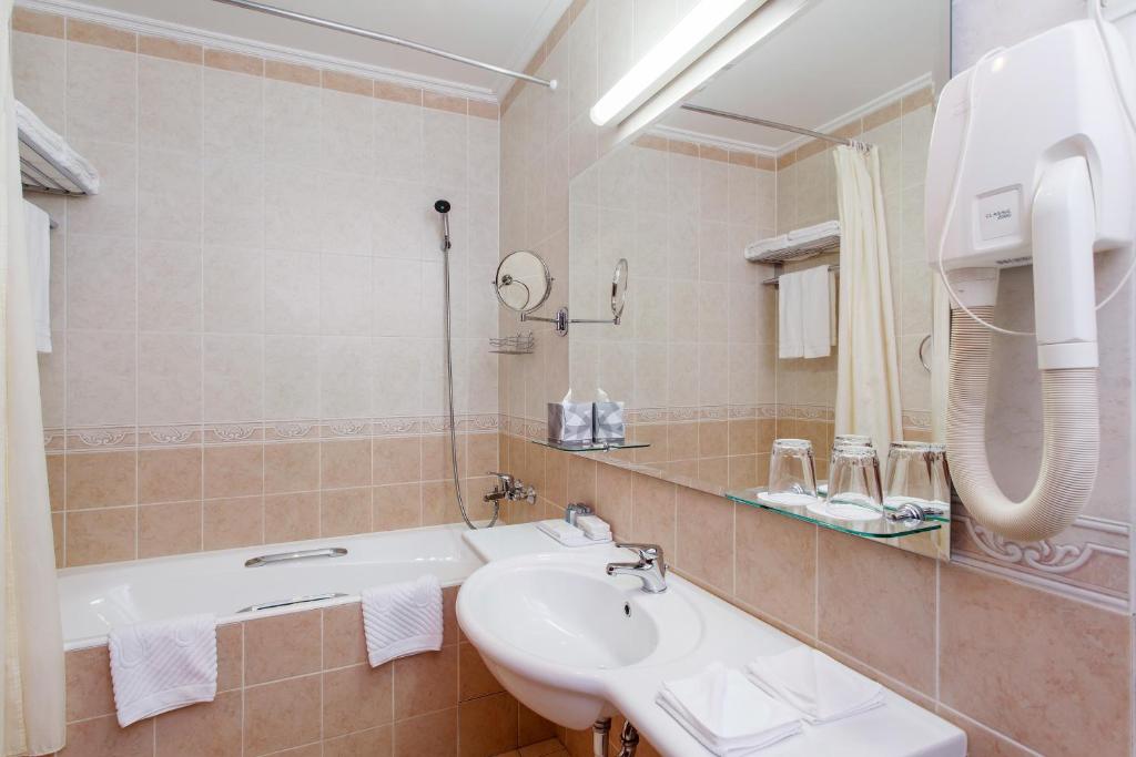 واضح است که 5 ستاره این هتل هنوز 5 ستاره از سطح بین المللی نیست ، بلکه یک فرد اتحاد جماهیر شوروی است که در طراحی فضای داخلی احساس می کند چیزی در مکان ها نیاز به تعمیرات کوچک دارد. یک سشوار ناراحت کننده در اتاق ، که از آن در زمان خشک شدن مو ، نازل پرواز کرد.