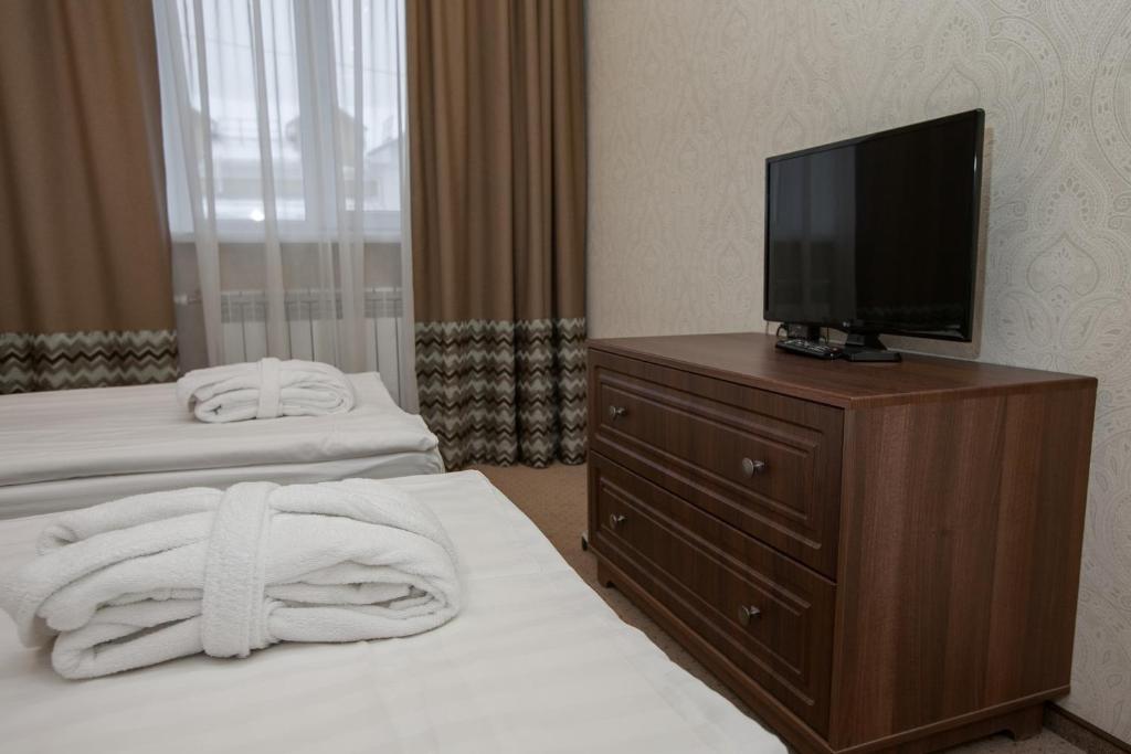 2. من یک استاندارد بزرگ 2 -spal داشتم. شماره (25 متر مربع) - اتاق بسیار تمیز بود ، مبلمان و لوازم خانگی در شرایط عالی ، حوله هر روز تغییر می کرد ، یک کتری با 2 فنجان ، یک حمام ، شامپو ، ژل ، کلاه دوش و فرش روی زمین وجود داشت. با وجود این واقعیت که هتل درست در خیابان اصلی است ، اتاق بسیار ساکت بود.