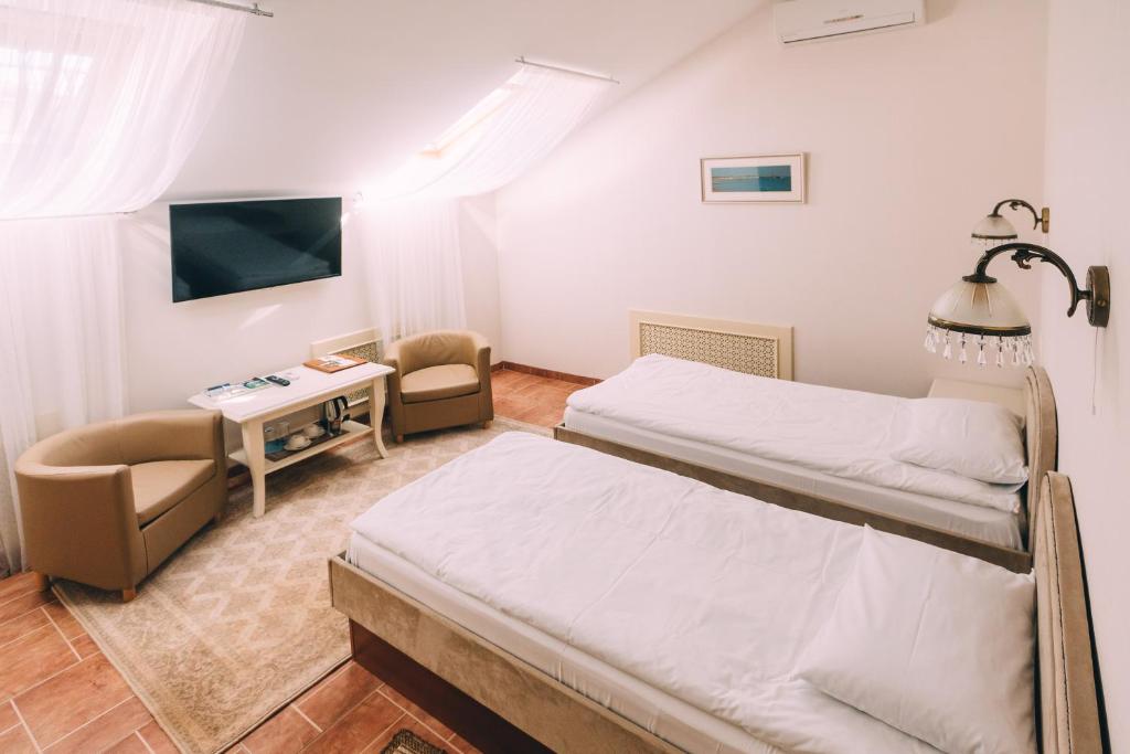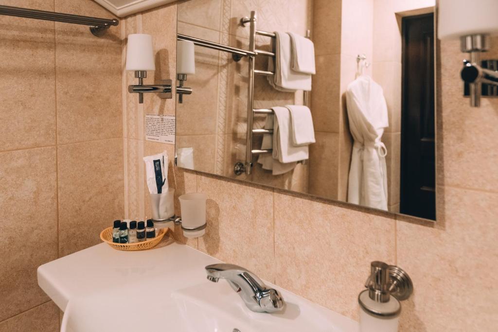 شاید زباله های کافی در اتاق وجود نداشته باشد ، زیرا یکی از حمام ها بسیار کوچک است. این همچنین یک کتری در اتاق خواهد بود ، اما ، این یک آرزو است ، نه یک منهای. پارکینگ خیلی راحت نیست - مکان های بسیار کمی وجود دارد ، و از آنجا که یک رستوران وجود دارد ، نه تنها میهمانان هتل می آیند ، بلکه میهمانان رستوران نیز هستند ، فکر می کنم همه در فصل مکان ها گم شده اند در غیر این صورت ، هیچ چیز برای شکایت در مورد :)