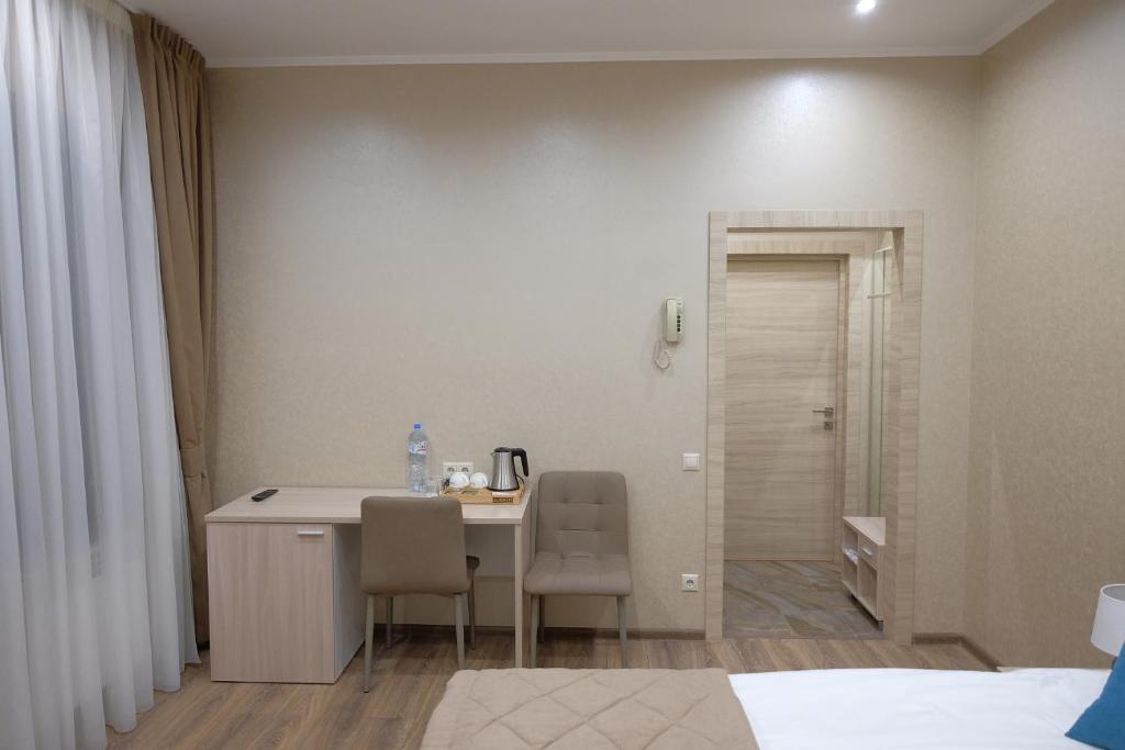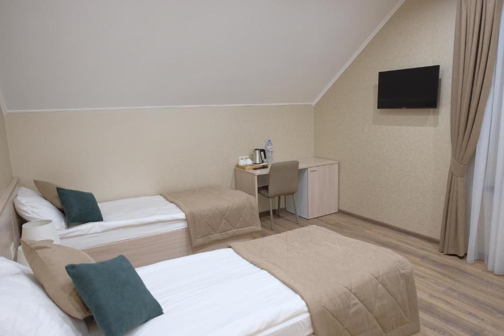 بدون شکایت تنها چیزی که وجود دارد این است که هتل در بزرگراه Roslavl واقع شده است، صبح ها، زمانی که هتل هنوز خواب است، می توانید صدای ماشین ها، به خصوص کامیون های سنگین را بشنوید. اما فهمیدیم که در یک هتل پنج ستاره در مرکز شهر نیستیم، بنابراین شکایتی نداریم. همه چیز خوب است.