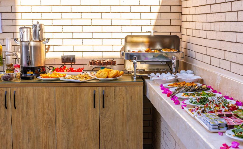 موقعیت مکانی، 5 دقیقه پیاده روی از مغازه ها و مرکز، عالی است. یک منطقه مسکونی دلپذیر که در آن هتل ها و اقامتگاه های دیگری نیز وجود دارد. خانه با بوگنویل جذابیت خاصی دارد. می توانید غروب آفتاب را در تراس بالا با چای ترکی لذت ببرید. در طبقه پایین هنگام صبحانه، منظره تراس هر روز صبح زیبا است. از فضای آرام و گرم مهمانخانه خوشم آمد. عصر که به خانه برگشتیم دو بار با چای و بیسکویت از ما استقبال کردند. بسیار دلنشین و مهمان نواز! صبحانه فوق العاده خوشمزه است. برای مقایسه یک بار هم در شهر صبحانه خوردیم. در مهمانخانه بسیار متنوع تر است. من در طول روز یک گیاهخوار شدم زیرا سالادها بسیار خوشمزه هستند. فلفل کبابی با سس گوجه فرنگی بسیار خوشمزه است. سالاد بادمجان هم ما فقط یک بار در 4 روز برای صبحانه سوسیس می خوردیم و این عالی بود زیرا می توانستیم چیزهای مختلف زیادی را امتحان کنیم. خربزه بر همه چیز برتری داشت! داشتن بالکن بسیار دلپذیر است و موقعیت اتاق به سمت داخل خیابان خوب بود. شب هوای تازه وارد شد و گربه ای از ما دیدن کرد. :) به غیر از چند اسکوتر و ماشینی که از کنارشان می گذرند، خیلی ساکت بود. تخت فوق العاده راحت بود - تشک متوسط سخت و ملحفه تازه بود.