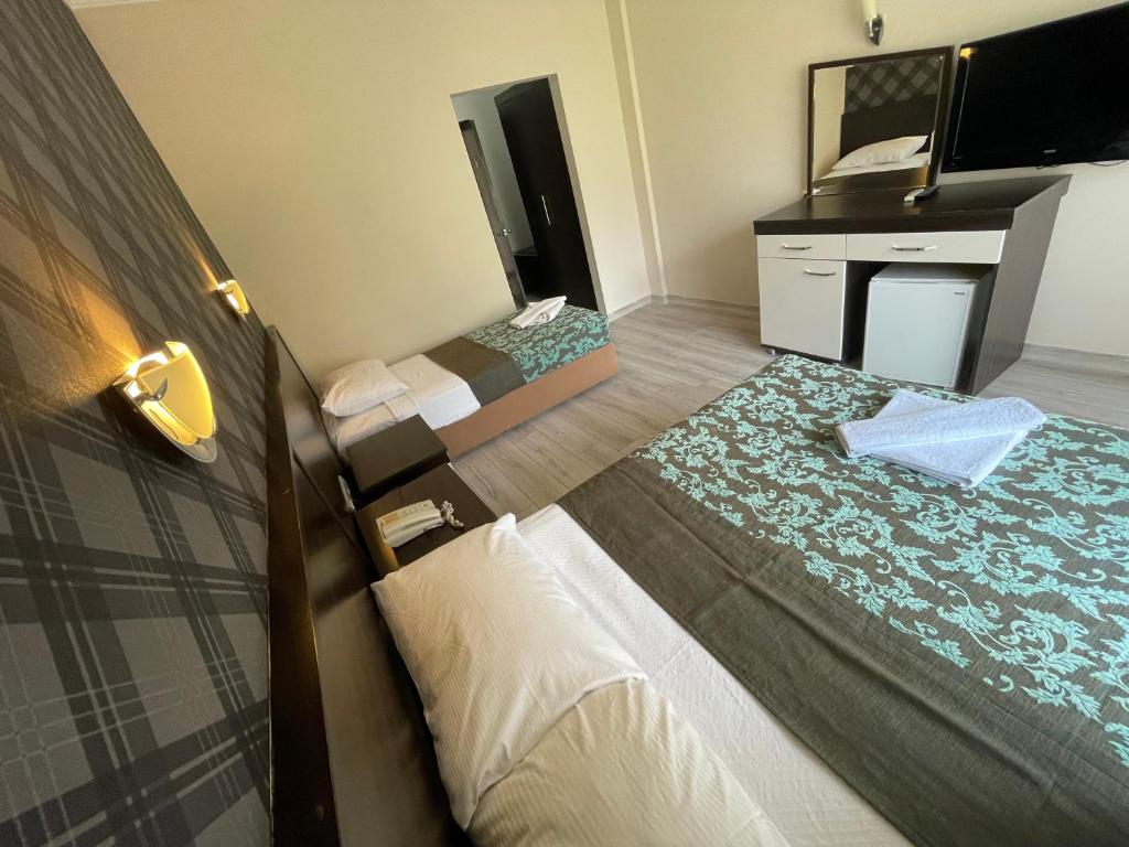 اتاق ها خسته بودند، در دوش ها کپک زده بودند، اگر هر نوع غذایی تمام می شد (میوه، گوشت و ...) چیزی گزارش نمی شد. نوشیدنی ها: شراب سفید یا قرمز، سرکه گلیم، ماءالشعیر آنقدر رقیق شده است که دقیقاً مانند آب است، قهوه فوری در صبح، غلات حتی با پرداخت هزینه در دسترس نیستند. اتاق غذاخوری کثیف است، ظروف بد شسته شده اند، ته بشقاب ها و فنجان ها کثیف است، تعداد زیادی مگس و گربه وجود دارد، آنها درست روی میزها بالا می رفتند. سونا یک نام دارد، 60-70 درجه. همچنین از این واقعیت که پسر صاحب هتل با دوچرخه در سراسر لابی هتل، پذیرش، حتی در رستوران توقف می کند و هیچ کس نمی تواند او را سرزنش کند، خوشم نیامد. Wi-Fi در هتل فقط در نزدیکی پذیرش کار می کند و در اتاق ها وجود ندارد. دریا عالی است، اما سنگریزه هایی در دریا وجود دارد، وحشتناک است.