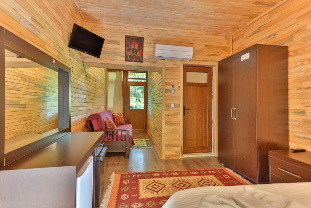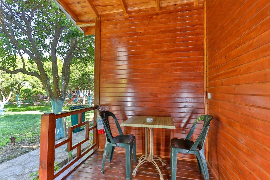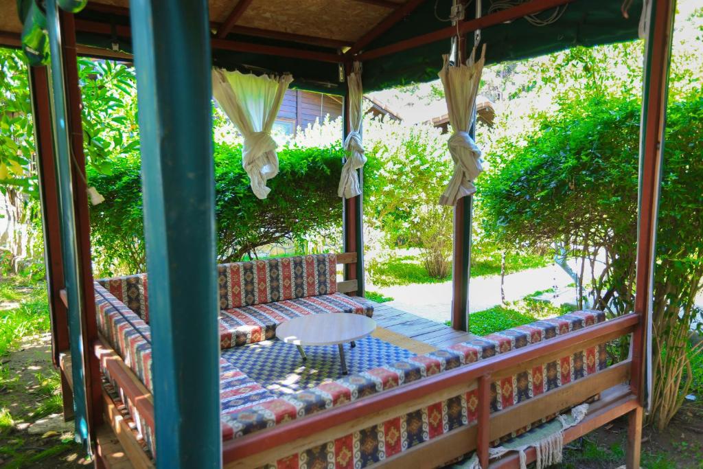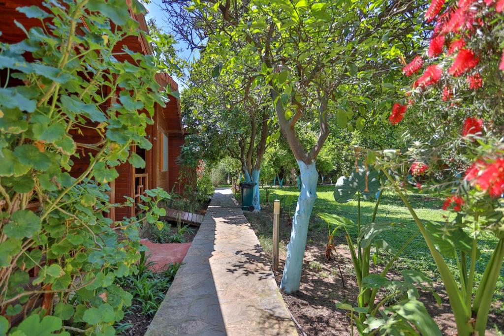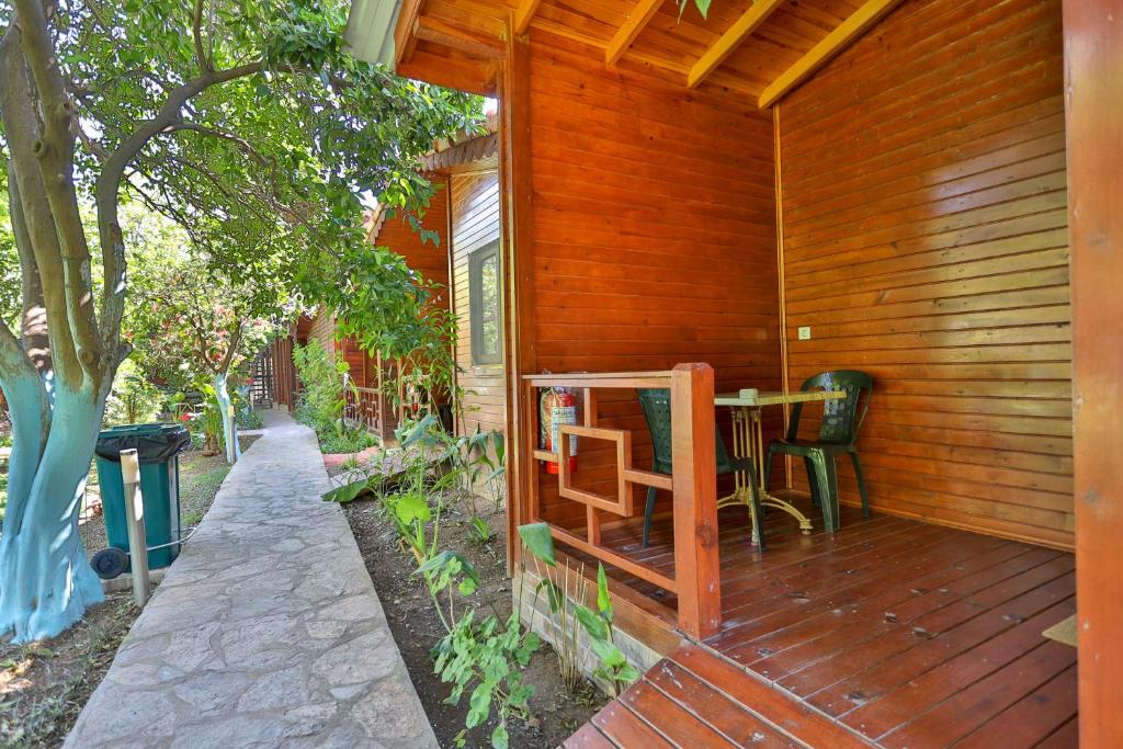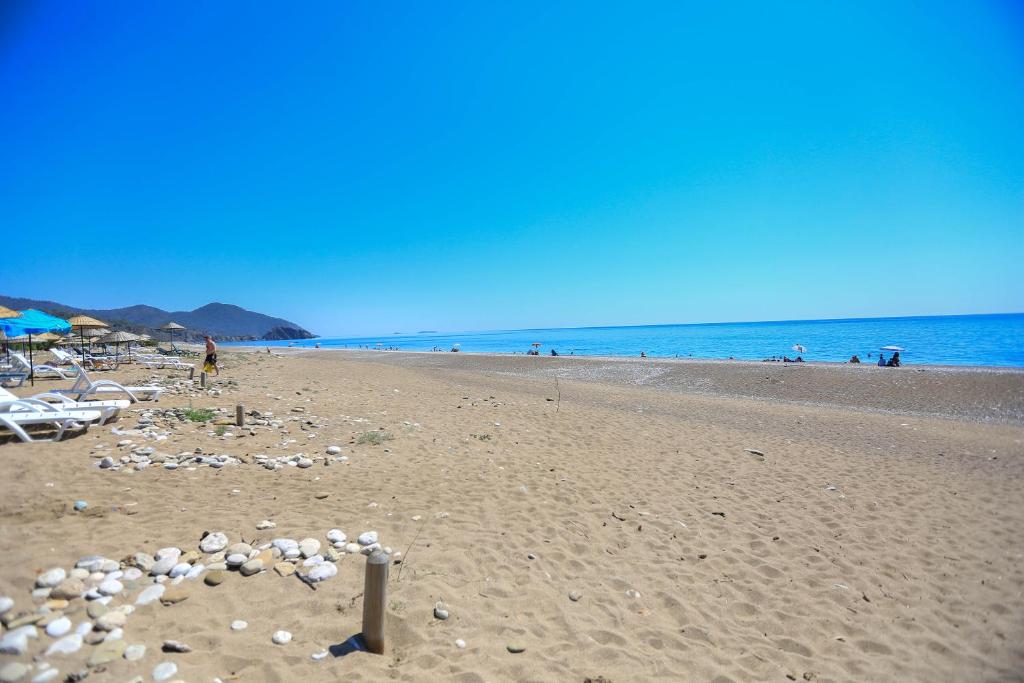خانه های ییلاقی بسیار تمیز و مدرن، غوطه ور در باغی سرسبز: صبحانه ترکی معمولی و بسیار غنی، چترها و تخت های آفتابی که برای سازه رزرو شده و به صورت رایگان در ساحل در دسترس هستند، کارکنان بسیار مهربان و مفید.